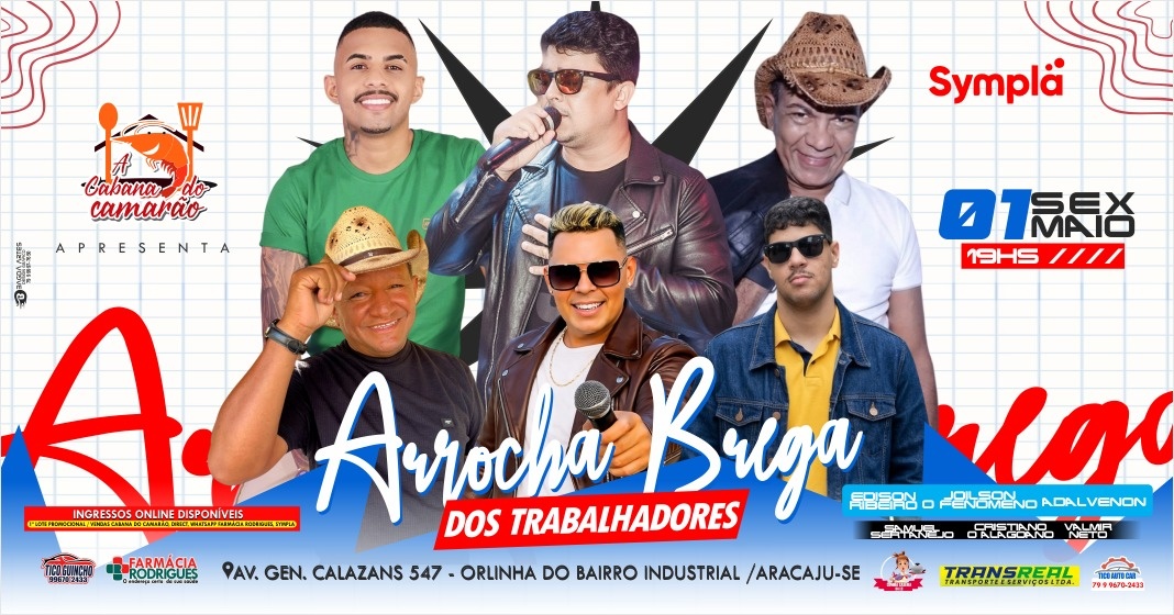 No dia 01 de maio, a Cabana do Camarão recebe o 1º Arrocha Brega dos Trabalhadores, um evento especial com mais de 8 horas de música ao vivo, reunindo grandes nomes do ritmo para uma noite inesquecível.