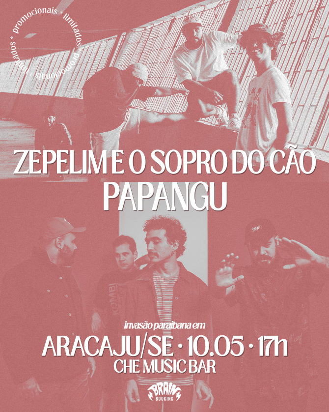 Dia 10/05, à partir das 17h, PAPANGU e ZEPELIM e e SOPRO DO CÃO levam à capital sergipana o melhor encontro entre João Pessoa e Campina Grande: uma invasão paraibana de rock troncho com um mosaico de ritmos pesados e nordestinos. O domingo é abrilhantado ainda pelo set de DJ Brain antes e depois dos shows.
