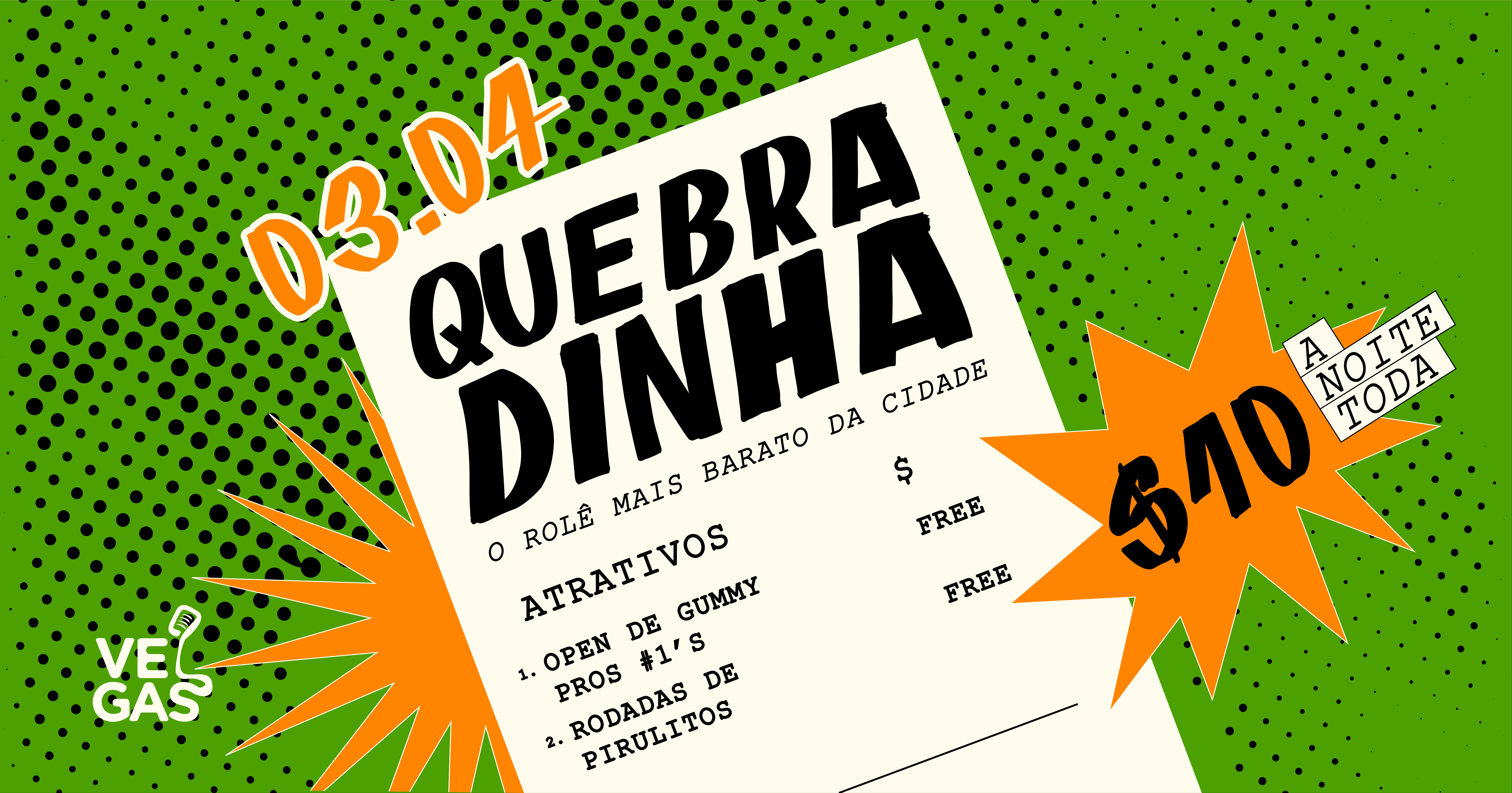 Vocês pediram e COMBATE PROD atendeu! Vai rolar BAILE 100% FUNK, no Vegas. Salve esta data e já espalha pra geral: 10.04 (sexta-feira), a partir das 22h O baile FUNKADÃO revisita uma de suas edições de maior sucesso, a BLACK & WHITE, e traz ainda dois especiais pra ninguém ficar parado. Vai rolar muito funk carioca e brega funk, no setlist de 6 DJs incríveis E não para por aí… Como o funk é sinônimo de dança, também vai rolar uma super apresentação de um dos grupos mais famosos da região. Mais informações em breve! \\\\\\\\\\\\\\ /// LISTAS FREE (LIMITADAS): Aniversariantes de abril e maio, pessoas T & PcD são convidad@s especiais. Envie seu nome pelas redes sociais @combateprod e garanta a cortesia Horário de funcionamento das 22h às 4h45. Obrigatória a apresentação de documento de identificação. Proibida a entrada de menores de 18 anos