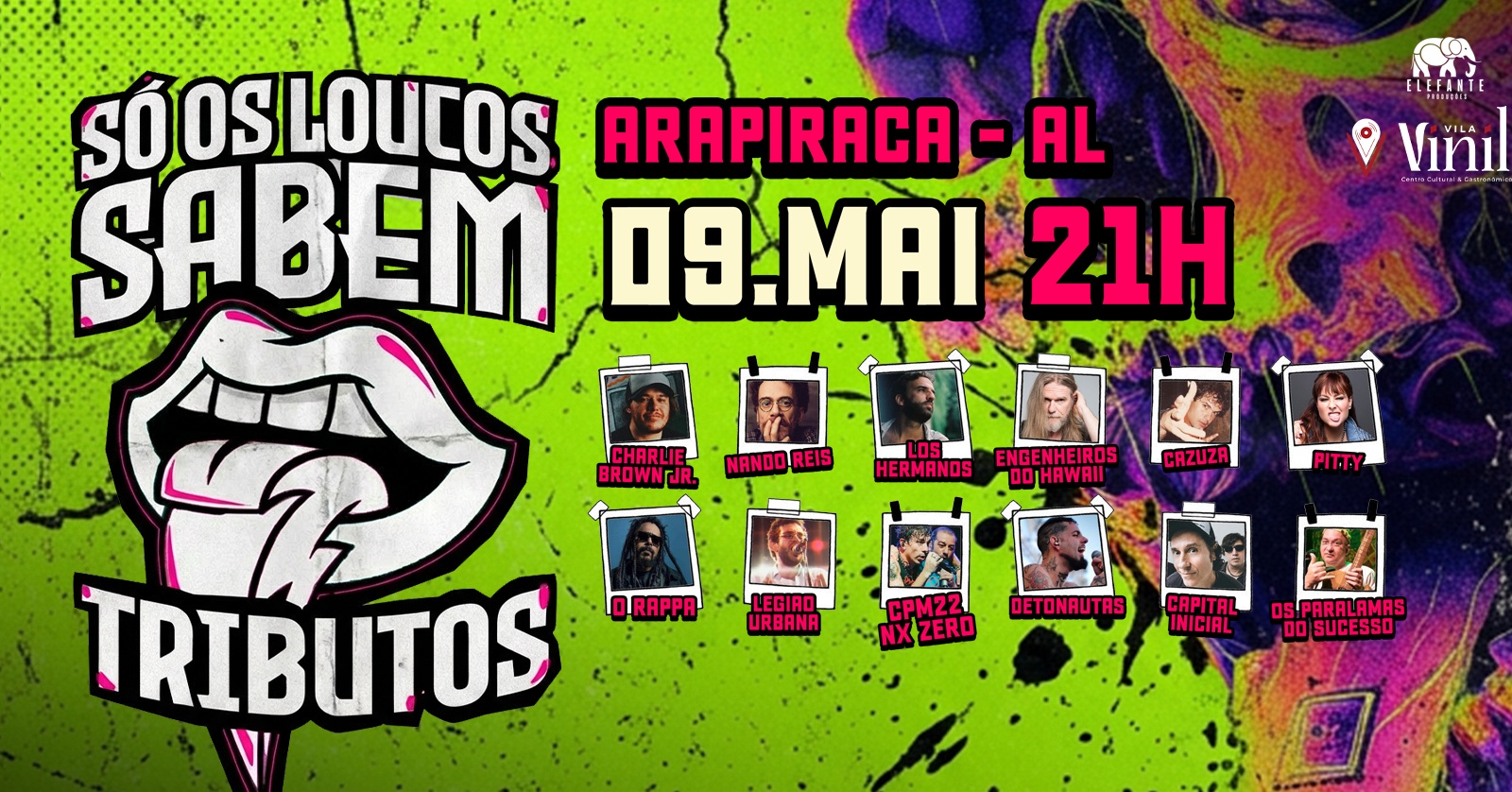 O evento que é sucesso em diversas cidades do país, chega dia 09/05 na cidade de Arapiraca-AL e vai reunir em uma só noite tributos a : LEGIÃO URBANA, LOS HERMANOS, CHARLIE BROWN JR, CPM22, O RAPPA, ENGENHEIROS DO HAVAII, NANDO REIS, PITTY,