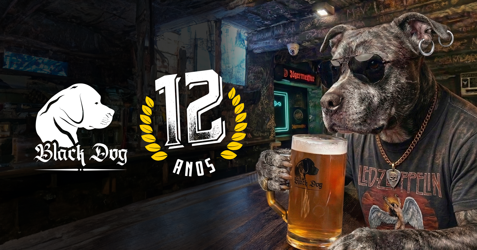 12 anos de Black Dog. + de 12 horas de festa. 6 horas de open bar. 12 horas de rock.