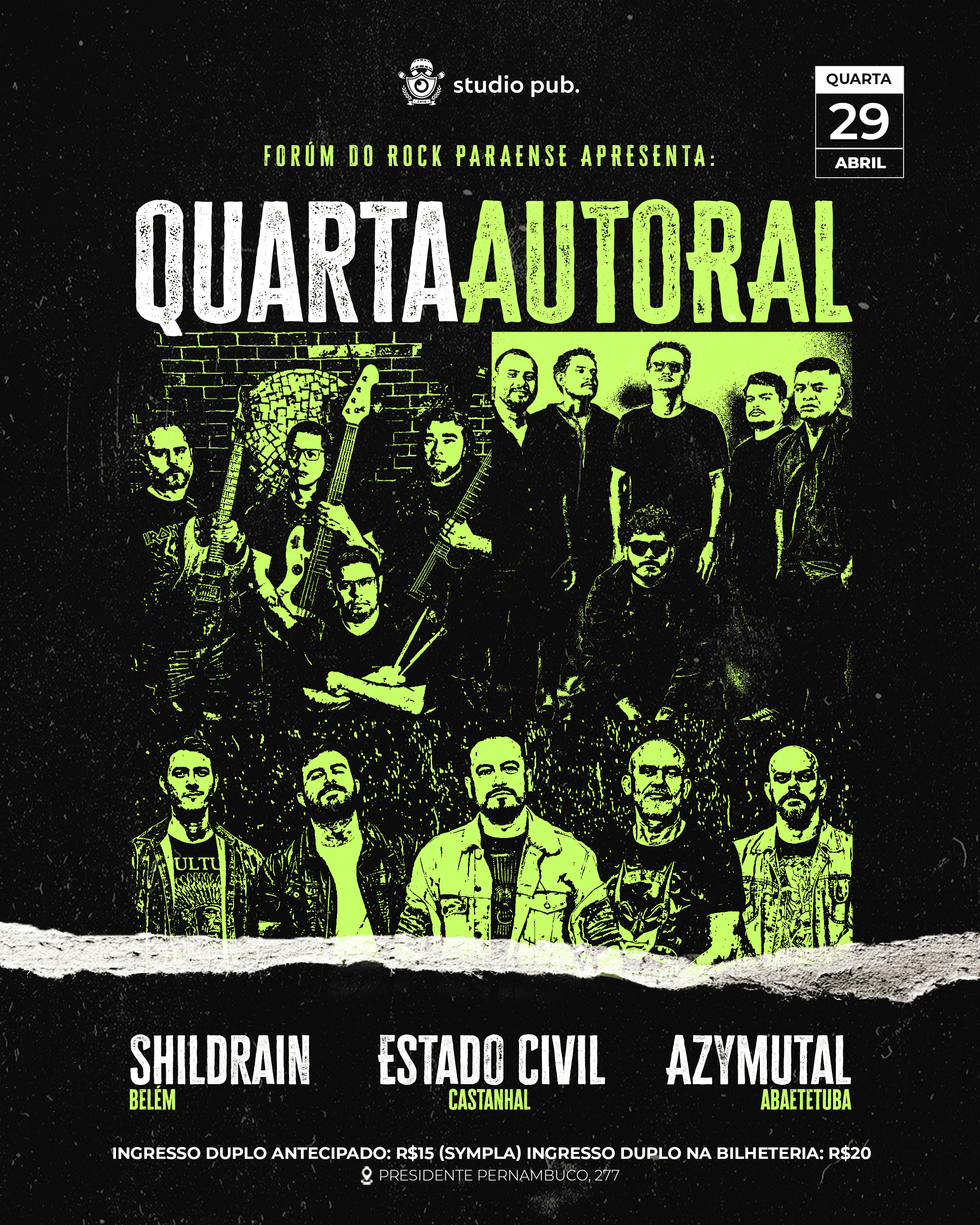 Até as 19h a entrada será GRATUITA para quem comparecer com camisas de BANDAS PARAENSES AUTORAIS, ou grupos/coletivos de apoio ao rock paraense