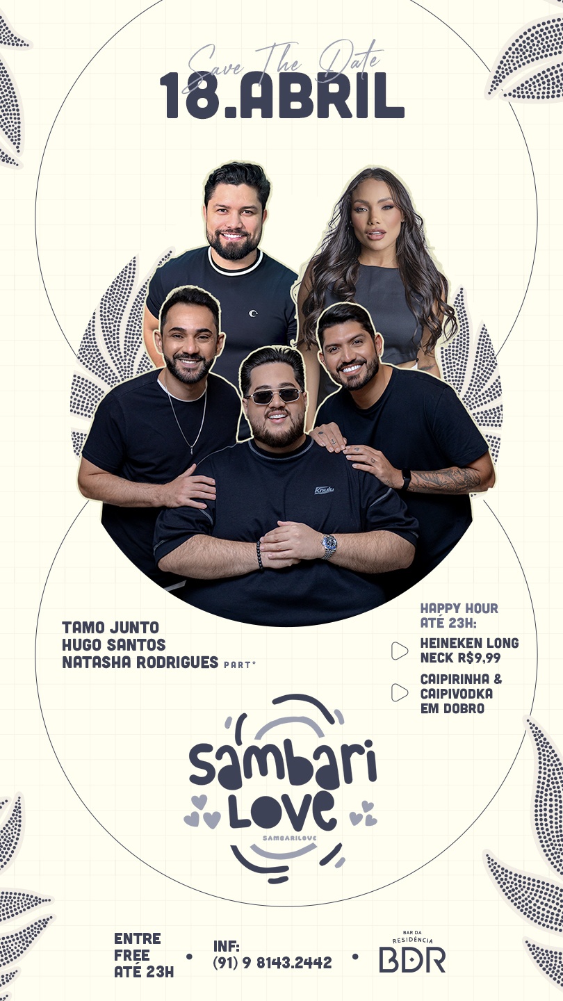 Venha curtir mais uma edição da Sambarilove, muito pagode com tamo junto , DJ mix esquentando a pista e pra finalizar daquele jeito Sertanejo com Hugo Santos.