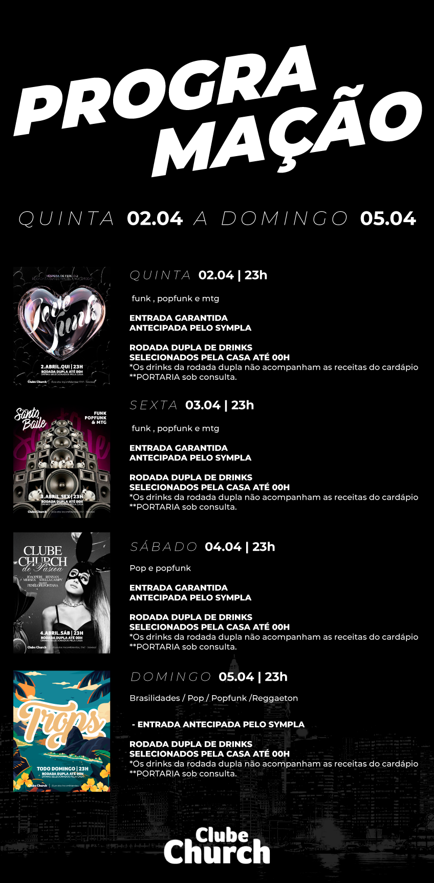 **•**Ao retira/comprar qualquer um de nossos ingressos você aceitará a política de privacidade disponível em: https://www.clubechurch.com.br/politica