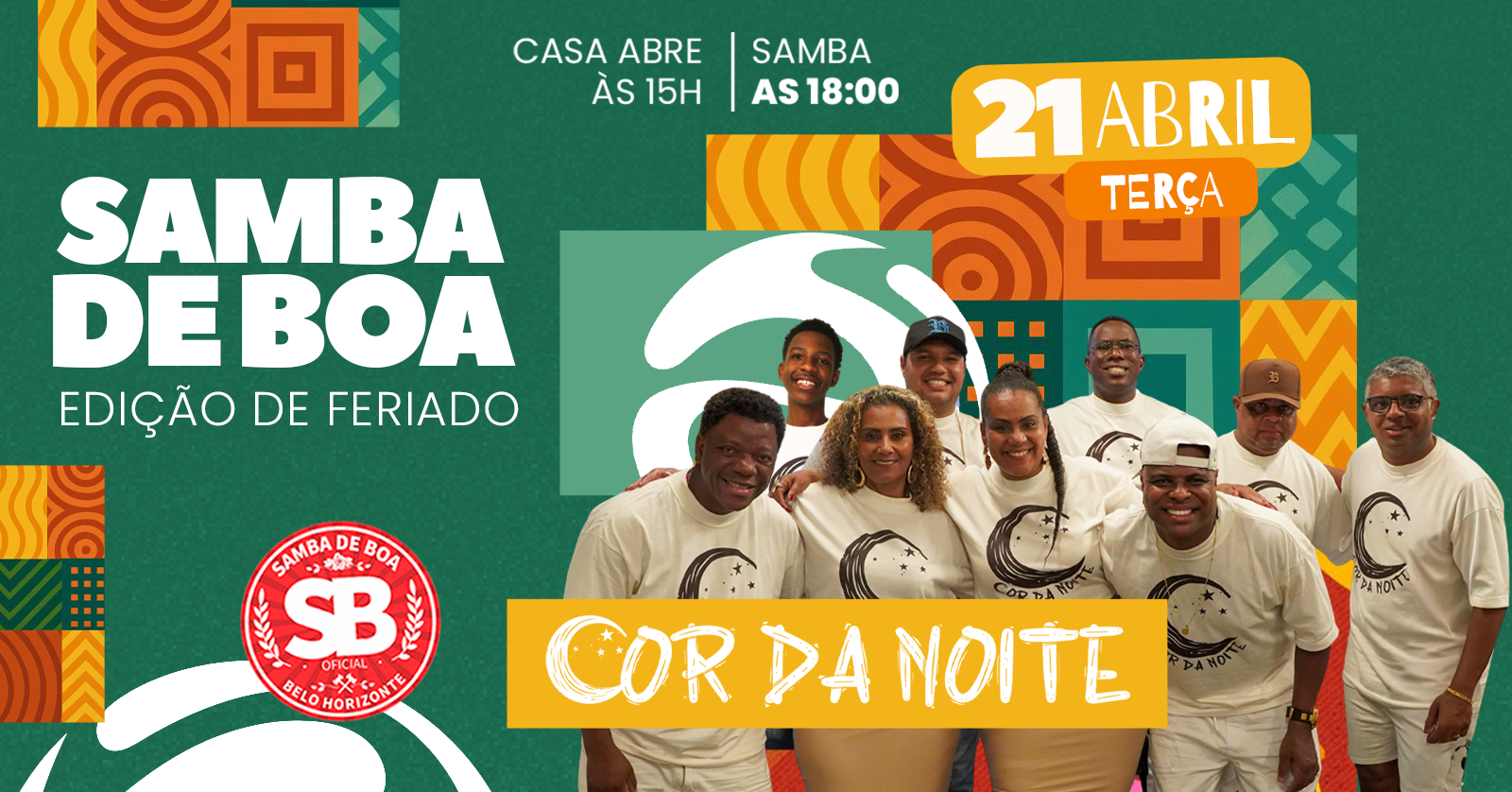 FERIADO É DIA DE SAMBA DE BOA COM COR DA NOITE!
