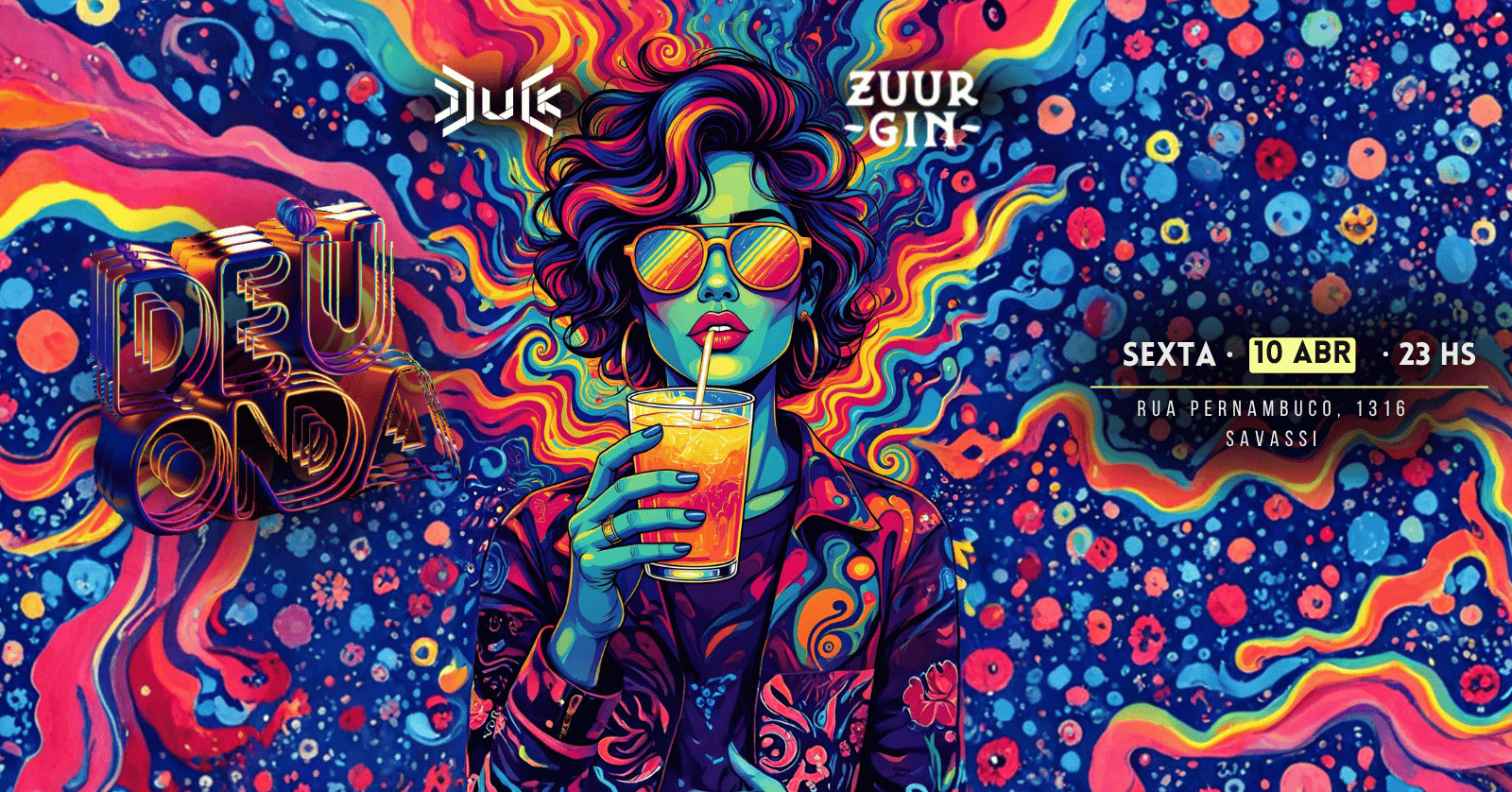 Nesta sexta a DDUCK traz novamente a DEU ONDA, uma nova festa com a energia eletrônica que vai deixar você com vontade de curtir cada música como se fosse a última. Do House ao pop a Deu Onda chega com apresentação **ZUUR GIN,**iluminação especial e projeções na pista!