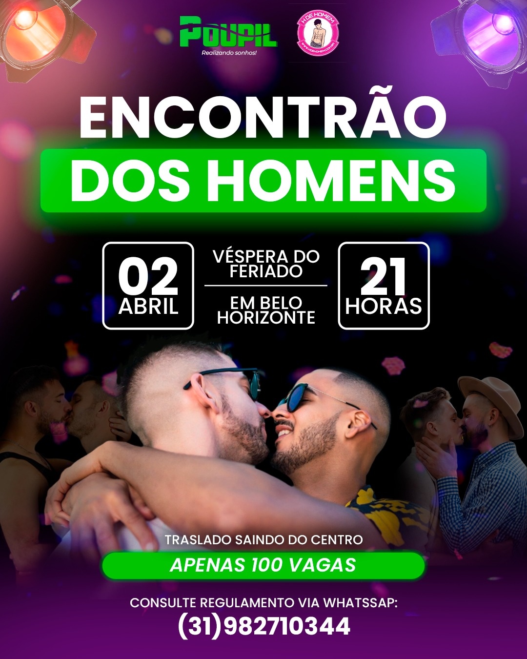 O Primeiro Encontro da H de Homens que é mais um produto do Grupo Poupil acontece na quinta feira dia 02 véspera de feriado. Em um ambiente super aconchegante onde estaremos encontrando nossos amigos , e fazer também novas amizades .