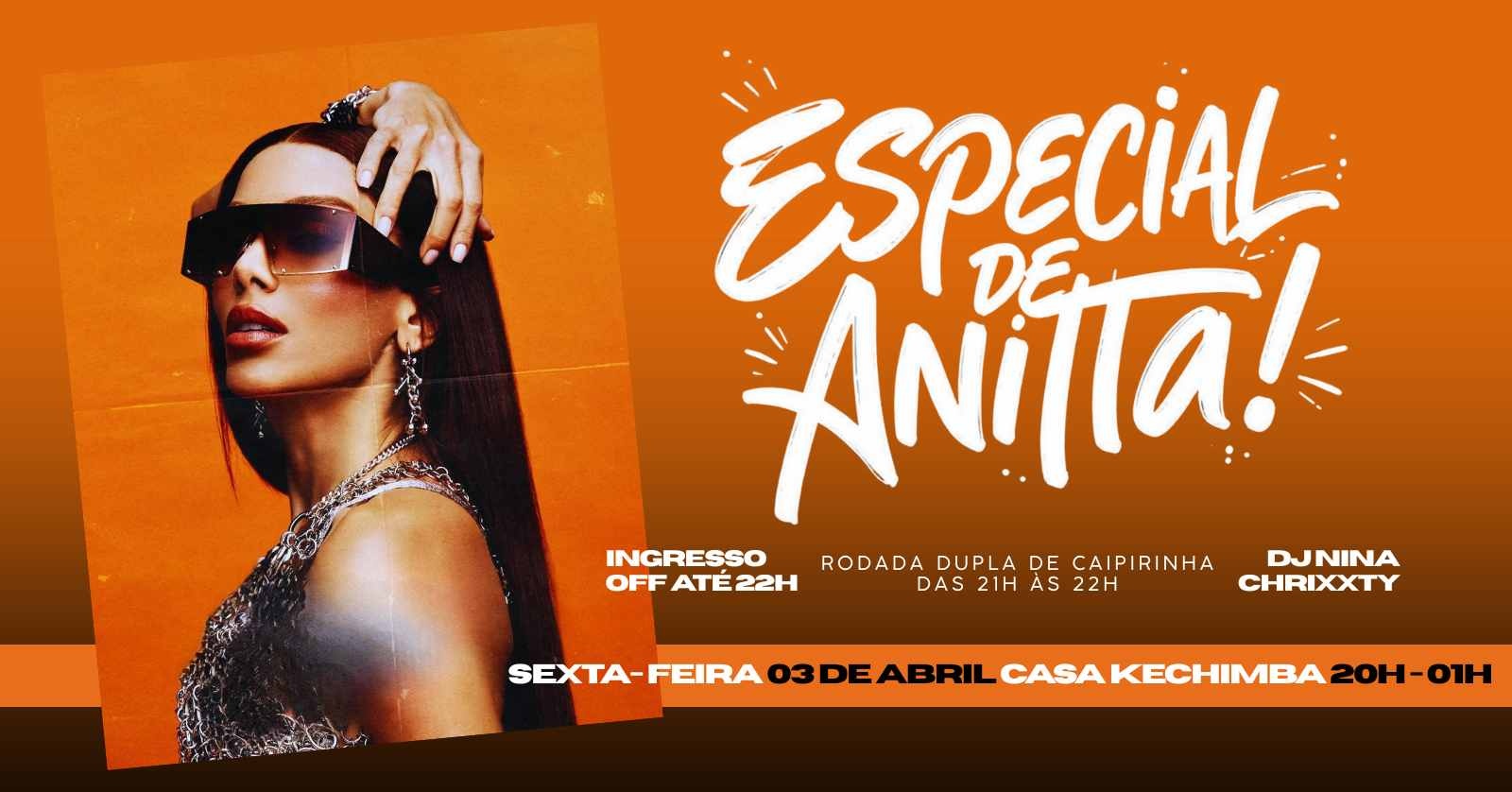 ESPECIAL DE ANITTA - 03/04 - SEXTA-FEIRA - RODADA DUPLA DE CAIPIRINHA (21H - 22H) - OFF ATÉ 22H | 3 abr 2026