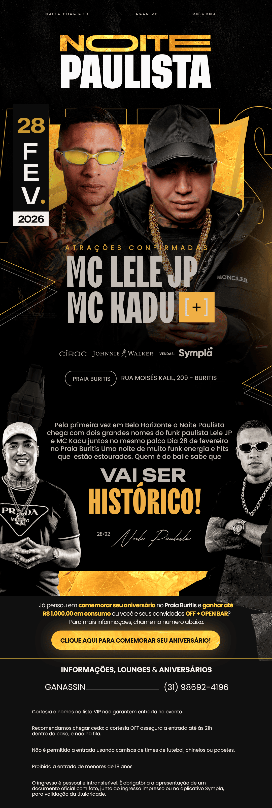 NOITE PAULISTA convida MC LELE JP e MC KADU - 1 mar 2026 em Belo Horizonte - Ingressos e Info | VibeIndex
