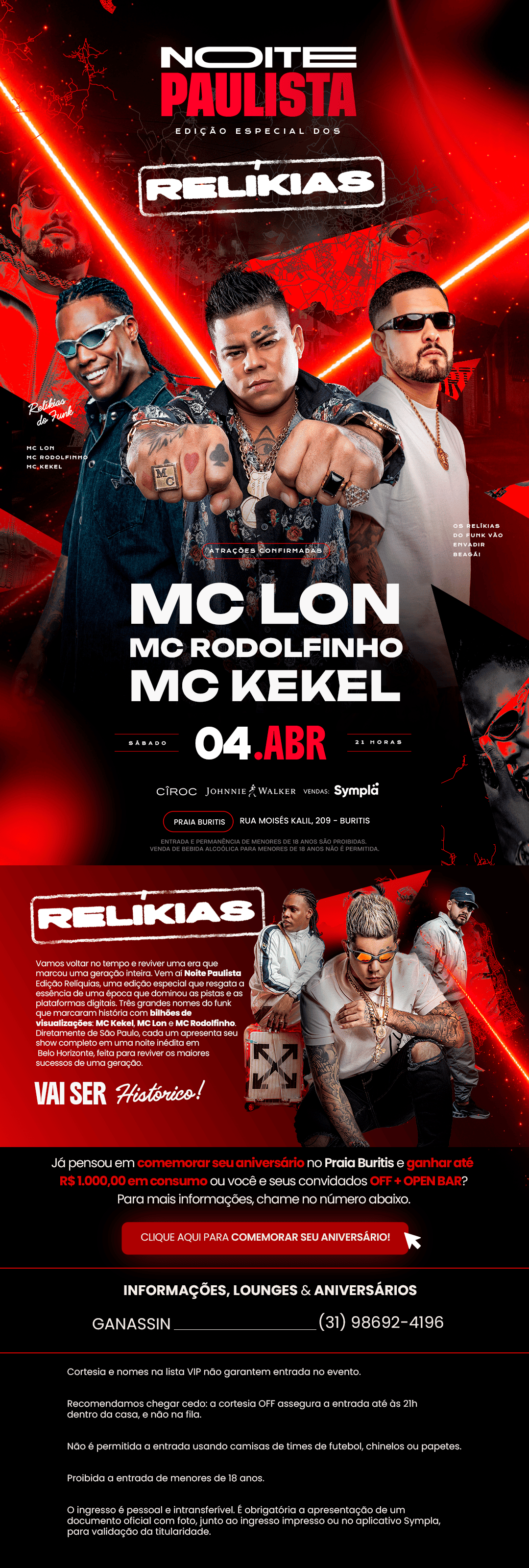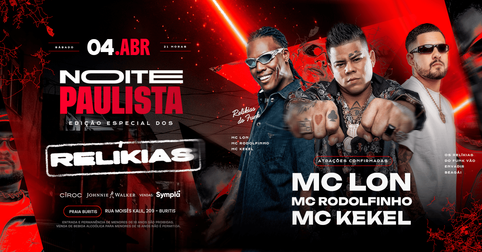 NOITE PAULISTA convida MC LON + MC KEKEL + MC RODOLFINHO | 5 abr 2026