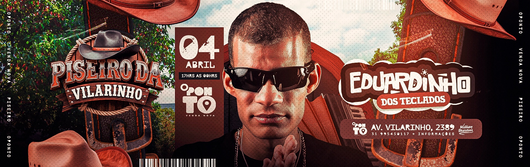 Dia 04 de abril, a partir das 17h, o Piseiro da Vilarinho chega fazendo poeira subir lá no O Ponto Venda Nova, atrás do Shopping UAI.