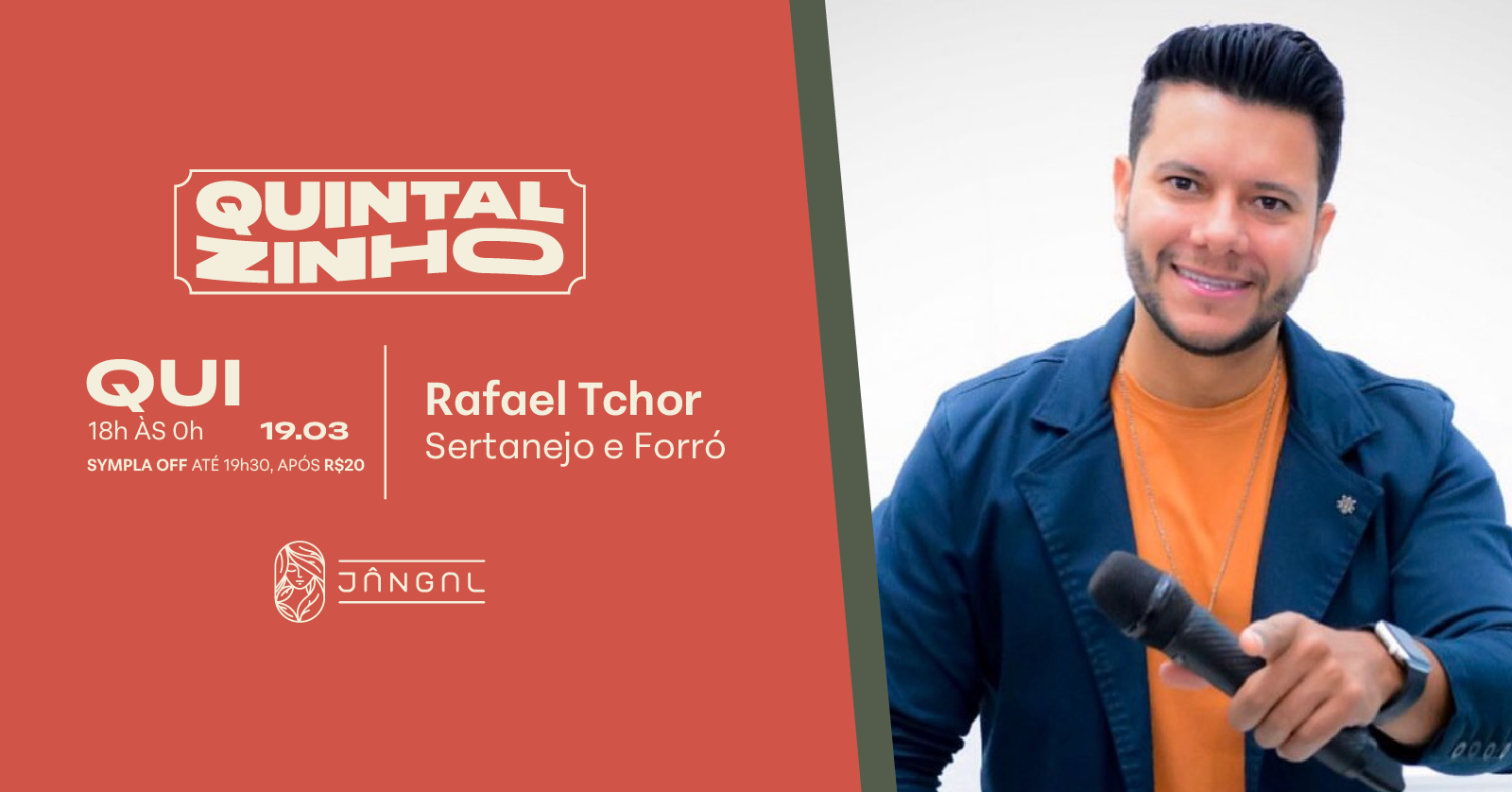 O Jângal recebe mais uma edição especial do Quintalzinho, no dia 19 de março, com Rafael Tchor, trazendo o melhor do Sertanejo e Forró para embalar a noite.