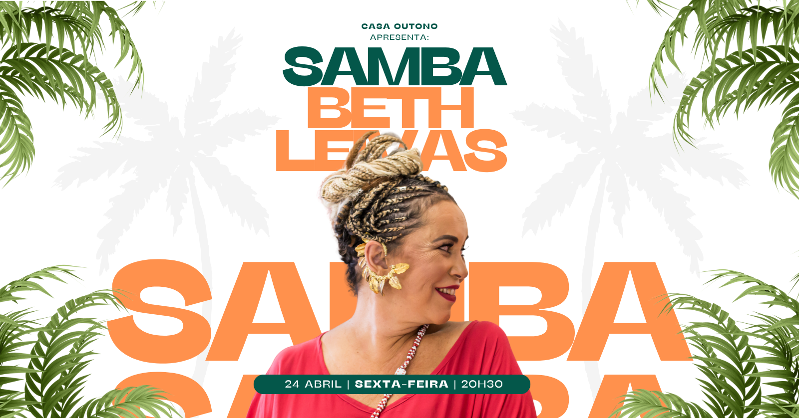 Com sua voz marcante e presença cheia de verdade, Beth Leivas convida você para uma celebração que mistura poesia, ancestralidade e a batida vibrante do samba.