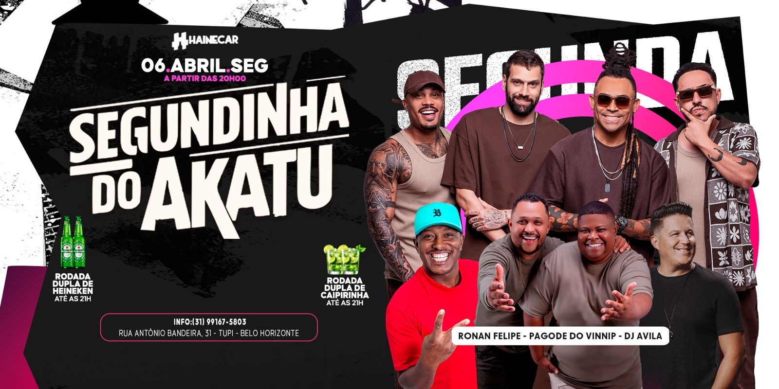 Resenha do Vaguinho Prepare-se para viver uma experiência diferente de tudo que você já viu. Não é apenas um evento — é uma verdadeira resenha. Imagine só: • Chopp liberado (100L garantidos — quanto mais cedo chegar, melhor aproveita) • Churrasco liberado (diversos tipos de carnes) • Entrada permitida com cooler (com a bebida de sua preferência) Não é permitido reabastecimento via aplicativos nem saída com retorno • Piscina liberada • Pagode ao vivo daquele jeito que a gente gosta • Venda de drinks no local Tudo isso em um ambiente pensado para quem gosta de música boa, bebida gelada e zero preocupação. A proposta é simples: Chegue com os amigos, curta sem pressa e vá embora apenas com boas histórias para contar. Se você gosta de pagode, churrasco e uma resenha de verdade… esse evento não é uma opção — é presença confirmada. INFORMAÇÕES IMPORTANTES • OBRIGATÓRIA A APRESENTAÇÃO DE DOCUMENTO OFICIAL COM FOTO (FÍSICO OU DIGITAL) • PERMITIDA A ENTRADA DE COOLER COM BEBIDA DE SUA PREFERÊNCIA • SAÍDA SEM RETORNO • PROIBIDO O REABASTECIMENTO DE COOLER ATRAVÉS DE APLICATIVOS • PERMITIDA A ENTRADA DE MENORES SOMENTE ACOMPANHADOS DOS RESPONSÁVEIS • NÃO TOLERAMOS QUALQUER TIPO DE DISCRIMINAÇÃO, ASSÉDIO OU COMPORTAMENTO INADEQUADO • AO PARTICIPAR DO EVENTO, VOCÊ CONCORDA COM A POLÍTICA DE IMAGEM E USO DE FOTOS/VÍDEOS +INFO: (31) 9 9480-0356 – VAGUINHO (31) 9935-0627 – SAMMY