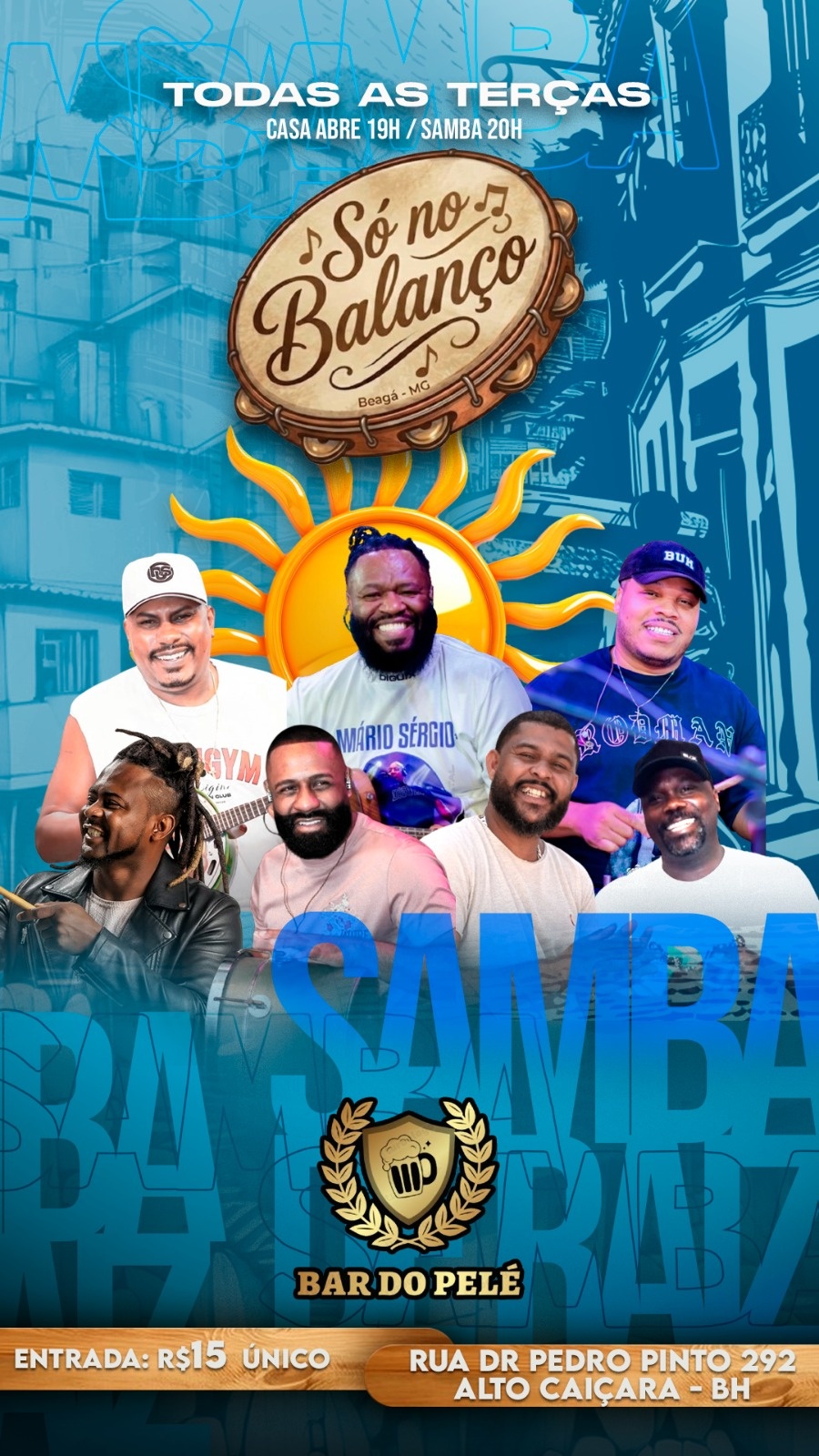 Roda de samba no comando de Anderson Augusto, Rodrigo Diguinho, William, Belchior, Mário chocolate, Edmilson e Túlio do pandeiro..