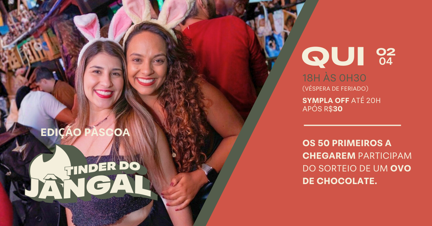 TINDER DO JÂNGAL - Edição Páscoa - VÉSPERA DE FERIADO 02/04 | 2 abr 2026