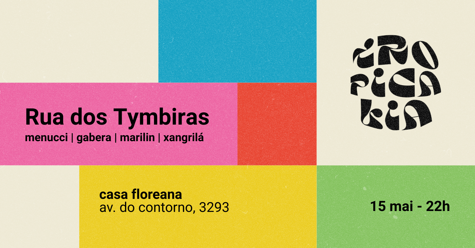 No dia 15/05 as 22:00 a festa Tropicália chega em sua primeira edição na Casa Floreana e sua terceira edição com os queridos da banda Rua dos Tymbiras!
