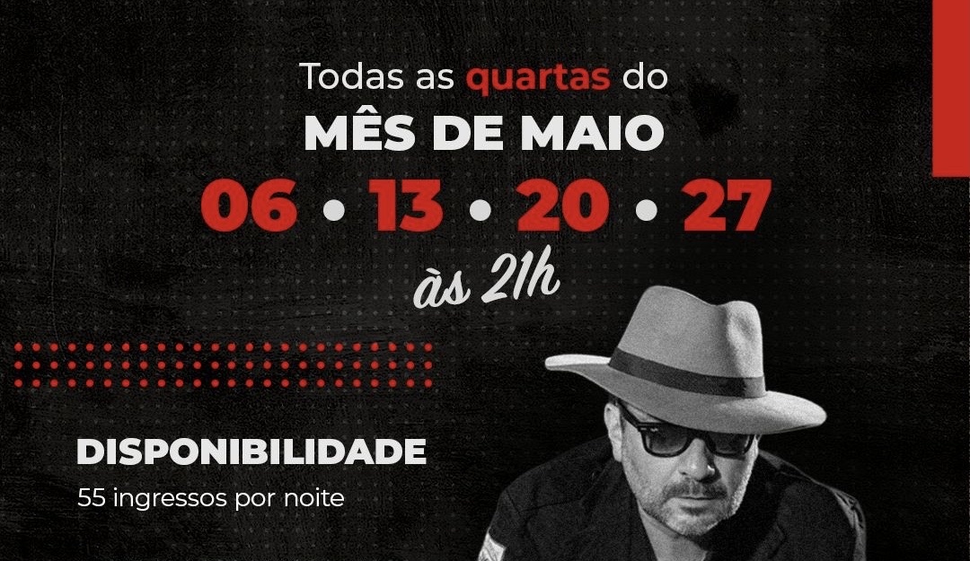 06/05 • 13/05 • 20/05 • 27/05 Horário do show: 21h