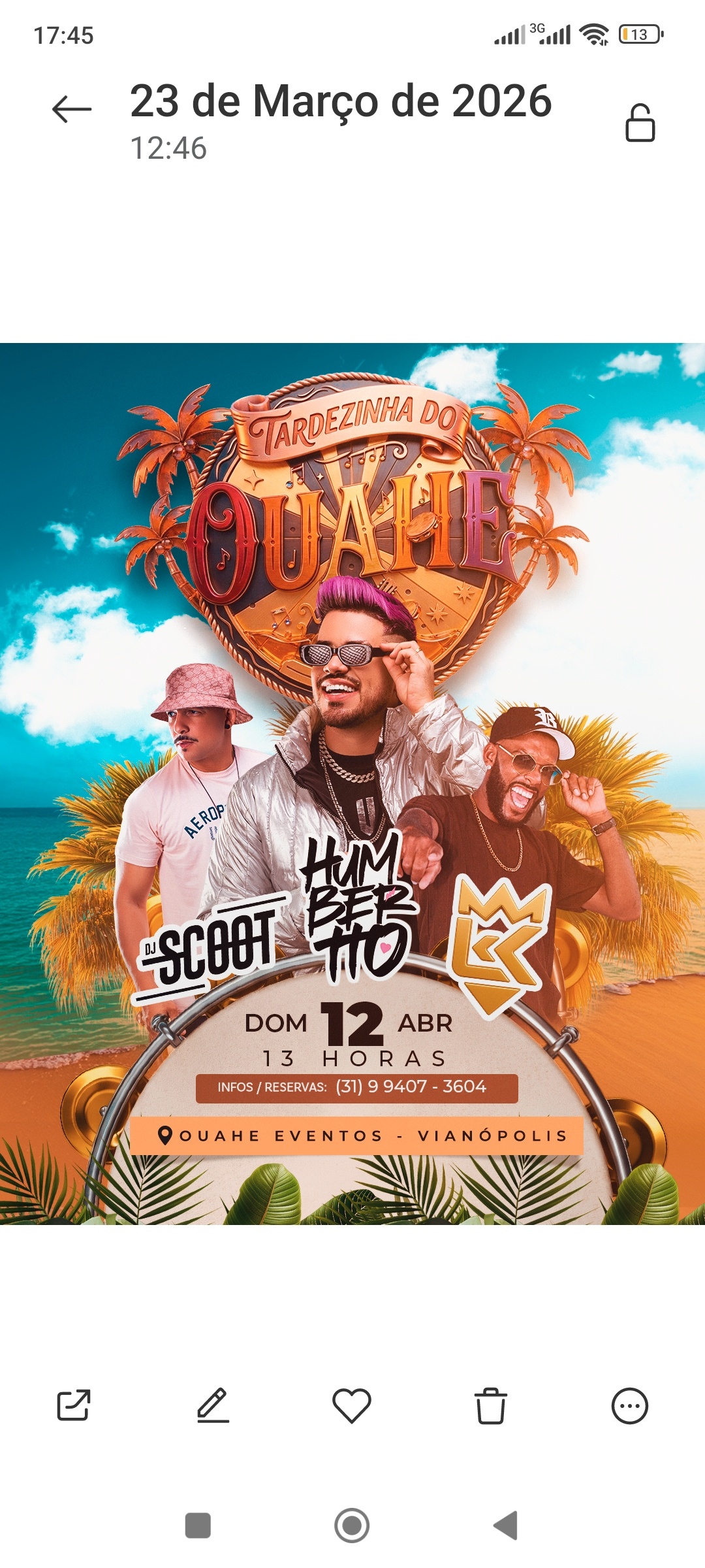 2 Tardezinha OUAHE, evento para família, espaço lindo,aberto, gramado, diferenciado, segurança, brigada, porcoes , cerveja, drinks. Ambiente arborizado, Traga sua família e divirta,se. Aniversariante? traga 10 convidados, ganhe sua entrada e receba um drink maravilhoso da casa.