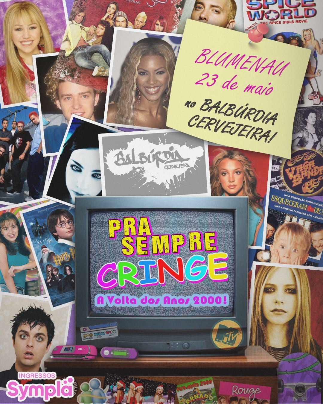 Anota aí que no dia 23 de maio a vibe cringe invade Blumenau, e neste dia você irá bailar muito ao som das melhores dos anos 80, 90 e 00' no Balbúrdia Cervejaria!