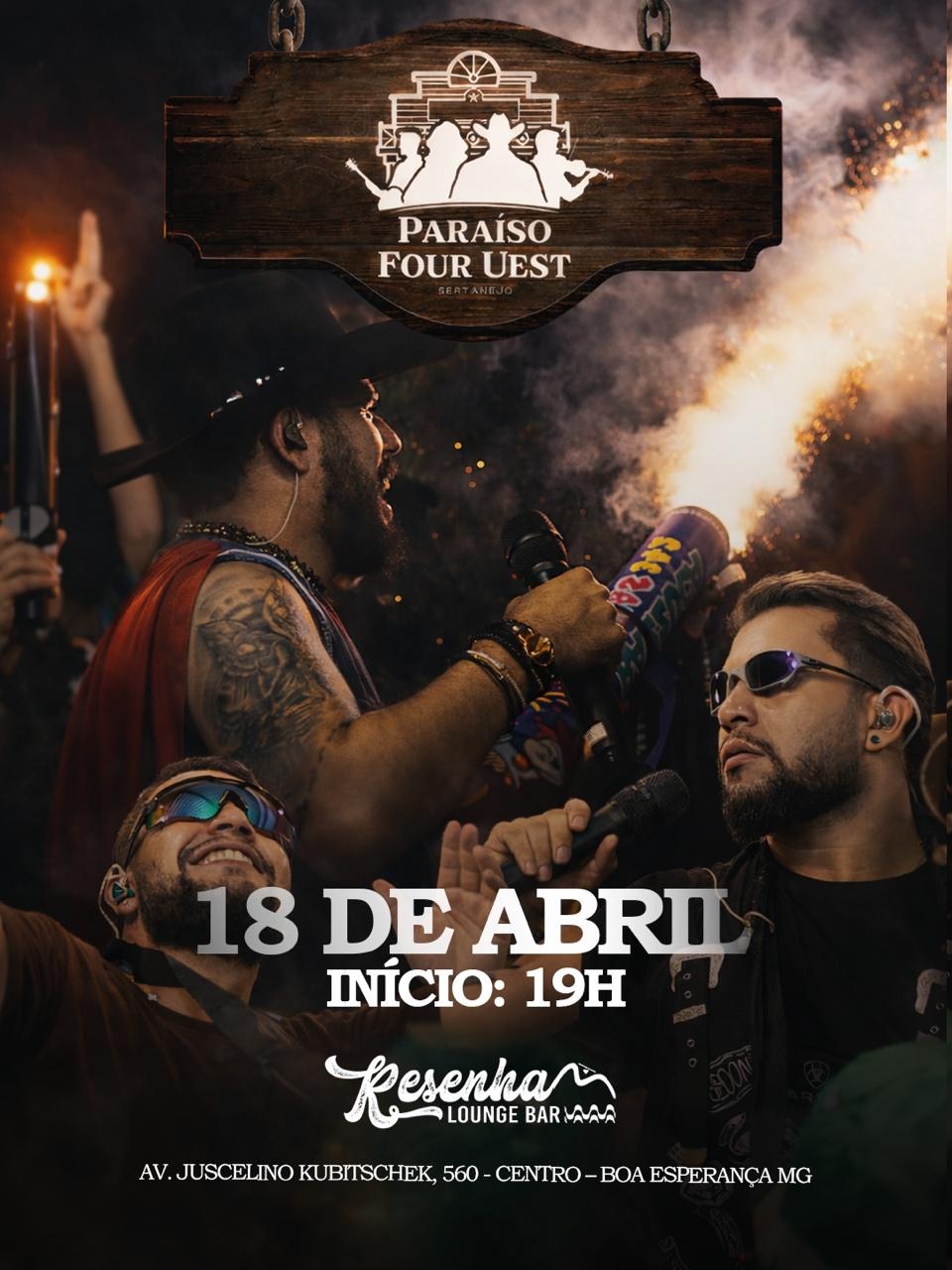 Dia 18 de abril tem noite de muita energia, música boa e aquela vibe que só quem vive sabe! A banda Paraíso Four Uest chega com tudo no Resenha Lounge Bar pra fazer um show inesquecível!