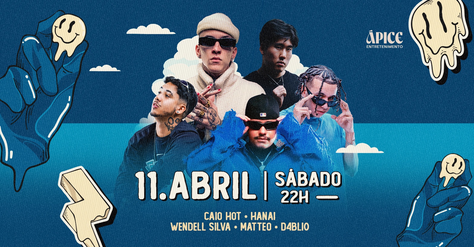 No dia 11 de abril, a partir das 22h, cinco nomes que dispensam apresentação tomam conta da casa: Caio Hot, Hanai, Wendell Silva, Matteo e D4BLIO. Um line-up construído para manter a pista em movimento do início ao fim — sem respiro, sem intervalo, sem desculpa pra parar.