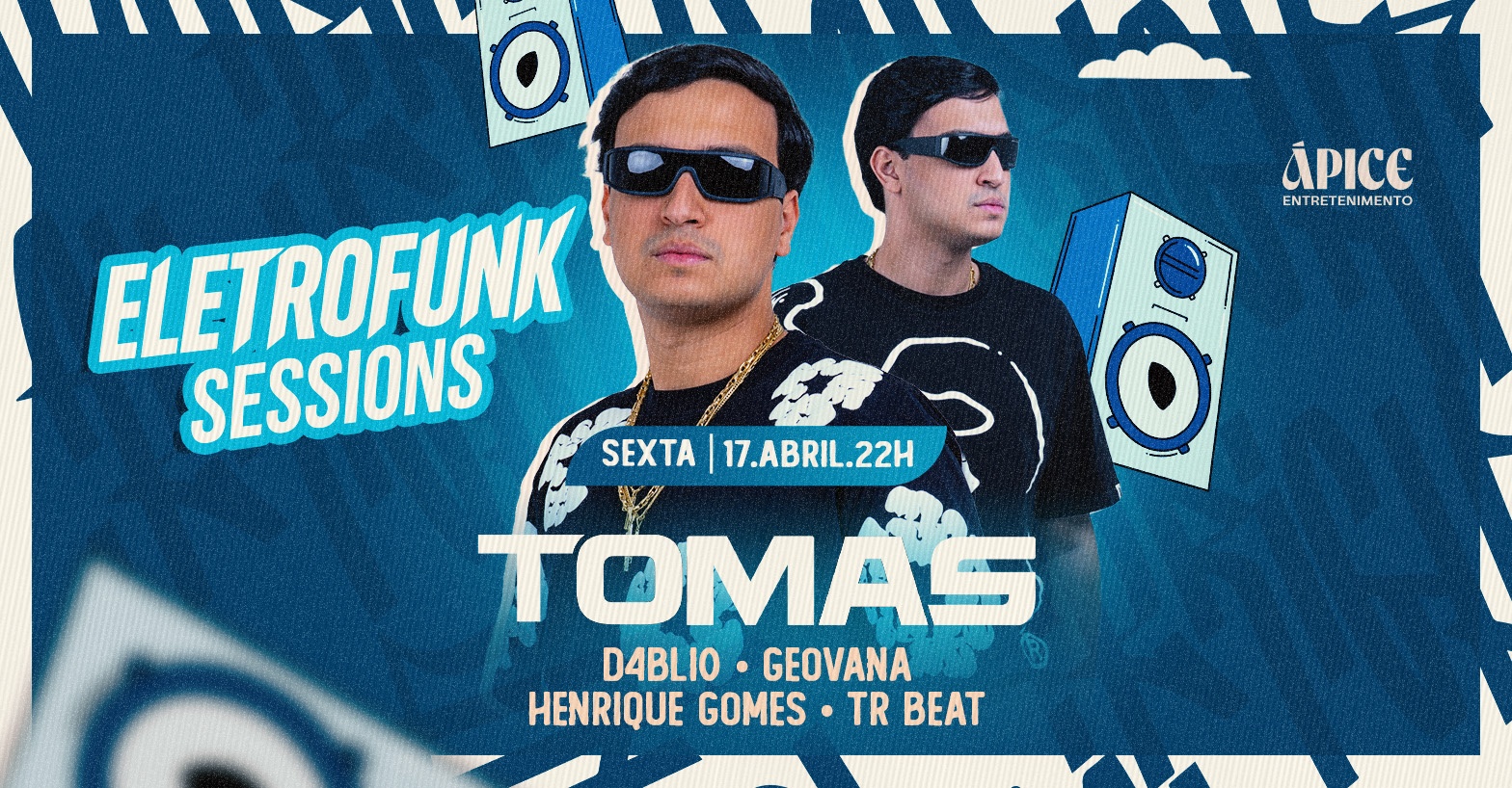 Na sexta, 17 de abril às 22h, a Ápice Entretenimento traz o peso total do eletrofunk com o headliner TOMAS comandando a vibe — graves no peito, batida no sangue e energia lá no topo.