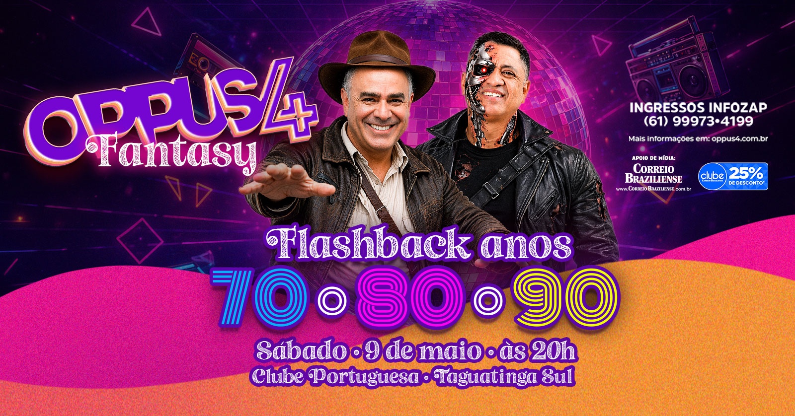 FLASHBACK 80’s — DANCING DAYS no Galpão 17 Dia 16/05 tem mais uma edição da nossa Flashback pra manter a energia lá no alto! É noite pra dançar, cantar junto e viver os hits que marcaram época A partir das 20h DJ Wendel Sousa & DJ Wellington Os clássicos mais dançantes dos anos 80 e 90 pra aquecer a pista do jeito certo! Banda Conecta Pop & Rock pra cantar junto, repertório leve, animado e cheio de hits que conectam gerações e criam o clima perfeito pra celebrar. E depois do show… os dois DJs voltam pra fechar a noite daquele jeito: pista cheia e energia no máximo! --- HAPPY HOUR Até 20h Cervejas selecionadas com preço especial. Chegue cedo, pegue seu copo e entre no clima do Galpão 17! --- INGRESSOS — MEIA-ENTRADA SOCIAL Todos os ingressos do Galpão 17 são vendidos como meia-entrada social. Lote Especial • R$ 20 antecipado (sem ecocopo) • R$ 25 com ecocopo 1º Lote • R$ 30 sem ecocopo • R$ 35 com ecocopo 2º Lote • R$ 40 sem ecocopo • R$ 45 com ecocopo 3º Lote • R$ 50 sem ecocopo • R$ 55 com ecocopo É permitida a entrada de outros copos, como ecocopos e copos térmicos. --- ACESSO • Entrada gratuita até 18h para pedestres (12+) • Motociclistas e garupas: entrada liberada a noite toda Após o horário gratuito: • Pedestres (12+): acesso pago conforme lote vigente --- MENORES • Somente acompanhados dos pais ou responsável legal, com documento • Não é permitida permanência na área de jogos (sinuca), mesmo acompanhados --- ESTRUTURA COMPLETA • Lanches variados • Drinks clássicos e autorais • Lava-jato ativo — sua moto limpa enquanto o rock limpa a alma • Brinquedoteca Infos: (61) 99413-3476 Se prepara pra uma noite de nostalgia, pista cheia e muita conexão!