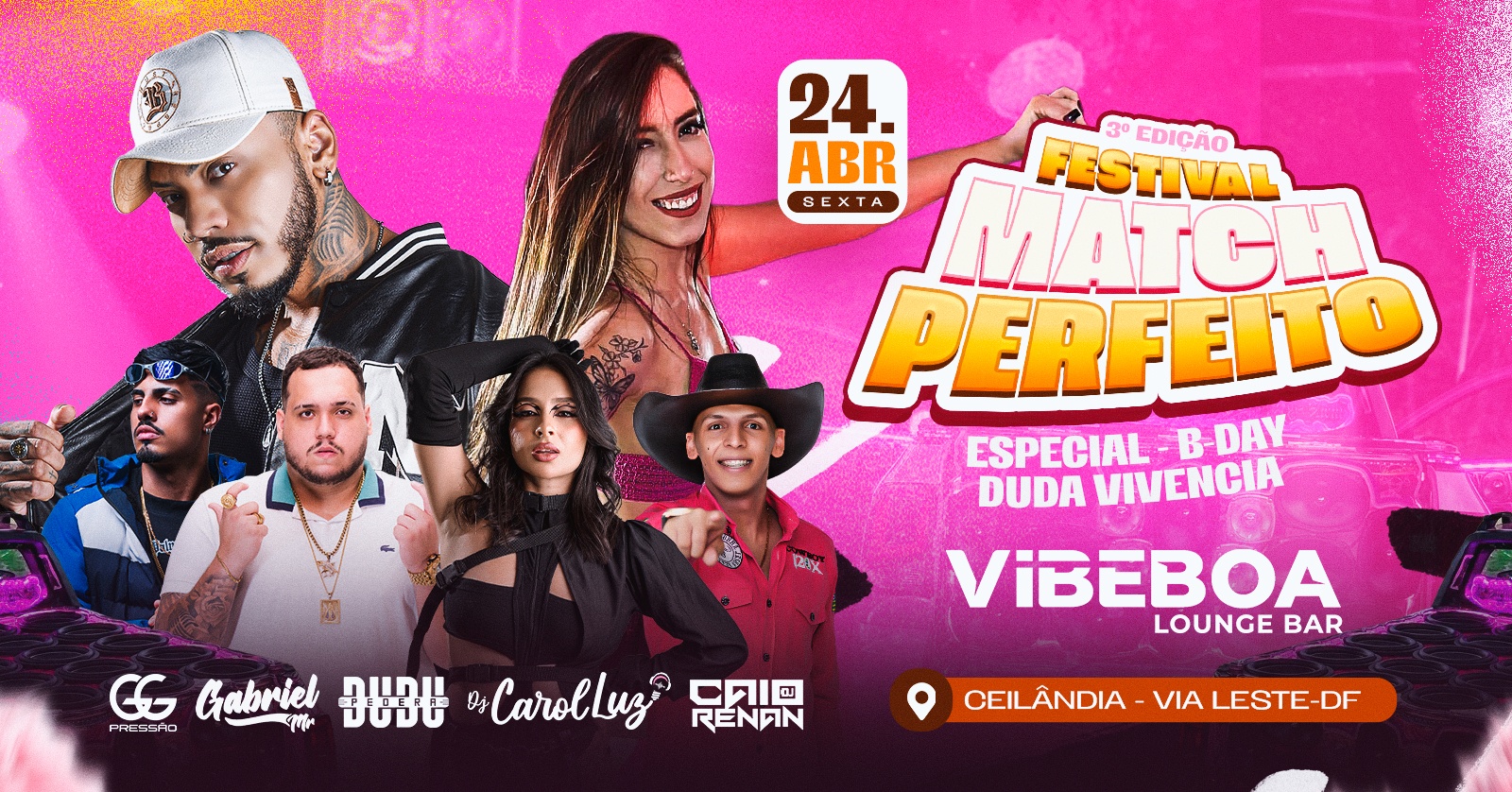 FESTIVAL MATCH PERFEITO - Espacial B-Day Duda Vivência / DIA 24 DE ABRIL SEXTA - Vibeboa Ceilândia