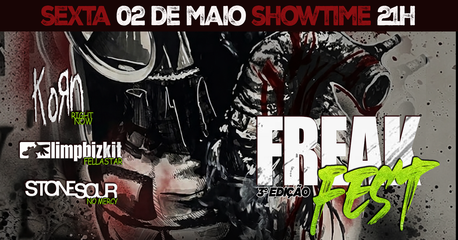 Atenção, fãs de New Metal! Vem aí a FREAK FEST 3ª EDIÇÃO no Moto Rock e CIA! Prepare-se para uma noite insana com os tributos mais pesados: RIGHT NOW (KORN TRIBUTO), FELLASTAR (LIMP BIZKIT TRIBUTO) e NO MERCY (STONE SOUR TRIBUTO)! Vai ser na SÁBADO 02 DE MAIO com shows a partir das 21h! Garanta já seu ingresso antecipado no Sympla e não fique de fora dessa celebração do Rock e do New Metal que cresce em Brasília!