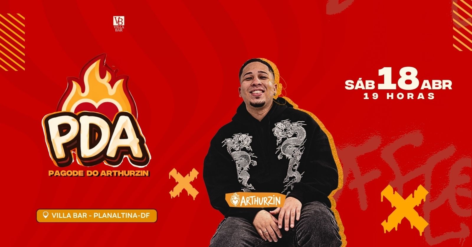 No dia 18/04, a partir das 20h, vem aí a 2ª edição do Pagode do Arthurzin, prometendo mais uma noite inesquecível de música, energia e conexão com o público!