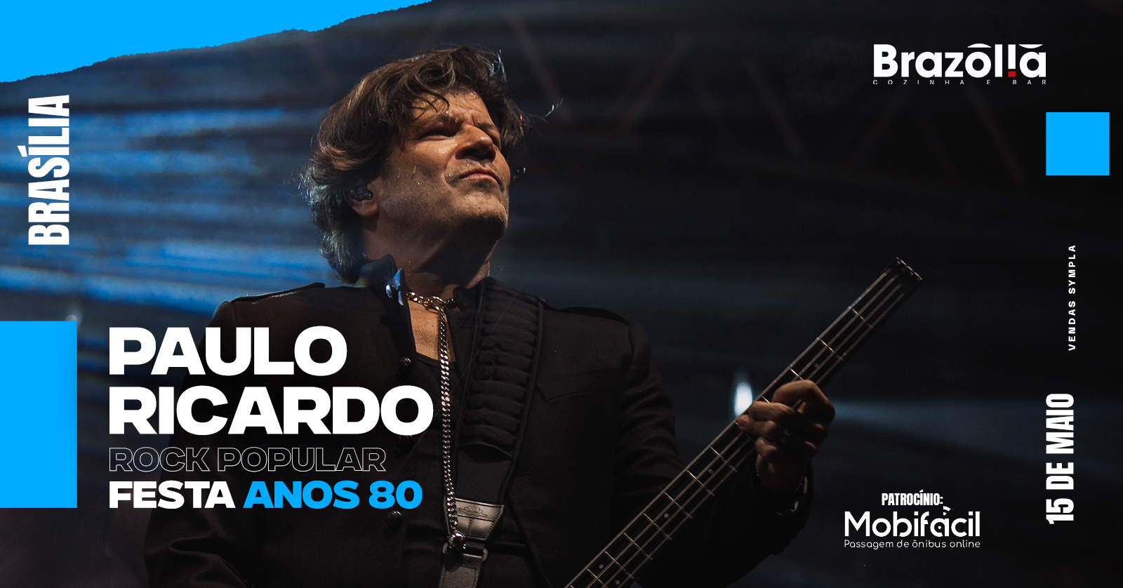 Você está convocado para uma noite histórica com uma das maiores lendas do rock nacional: Paulo Ricardo! Prepare-se para reviver os grandes sucessos da turnê "Rock Popular" em uma Festa Anos 80 inesquecível. Dos clássicos do RPM aos hits da carreira solo, será uma viagem no tempo com toda a energia que só Brasília tem.