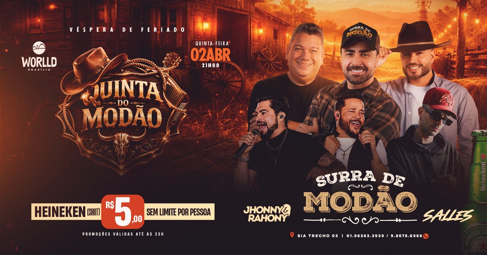 Dia 02/04 (SÁBADO), tem QUINTA DO MODÃO na Worlld Brasília.