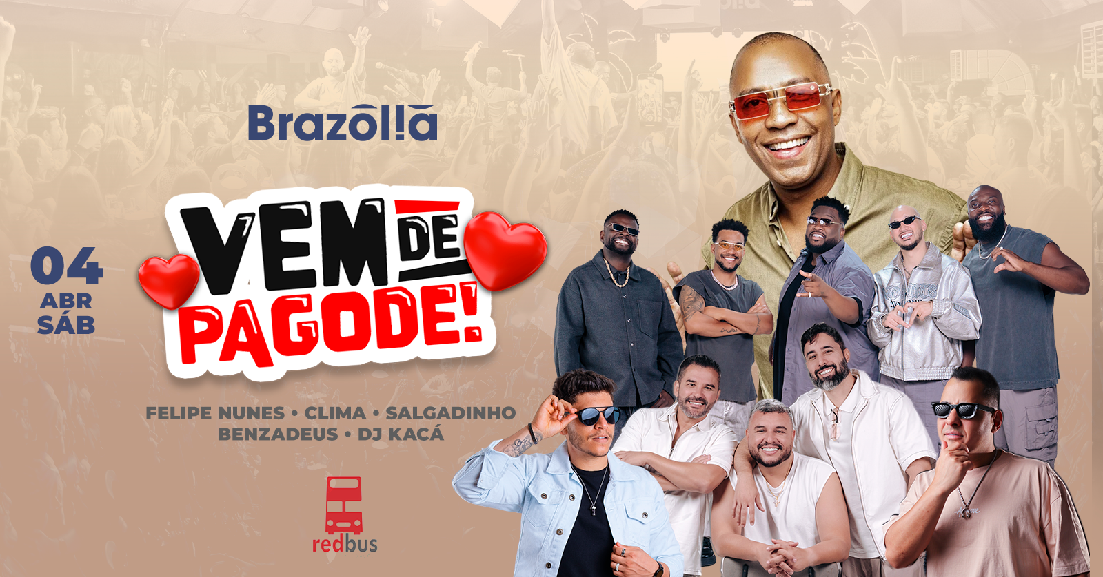 É a oportunidade perfeita para reviver os grandes momentos de uma época que mora no coração de quem ama pagode, no clima exclusivo e na vibe única que só o Brazólia + Redbus Produções sabem entregar.