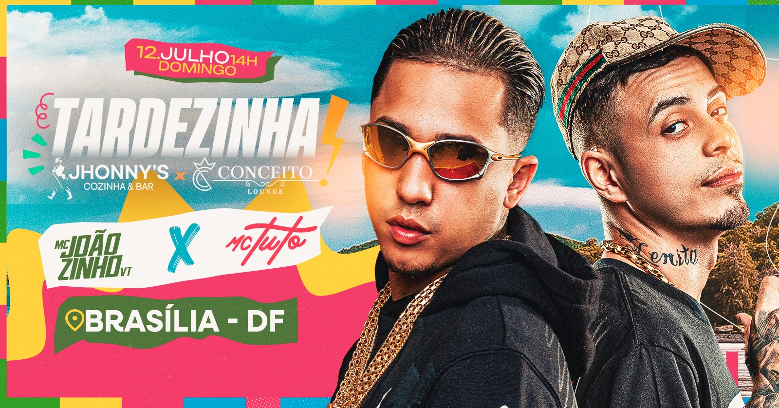 No dia 12 de julho, a vibe vai ser única com a Tardezinha trazendo muito som automotivo, energia boa e as atrações que estão estouradas: MC Tuto e MC Joãozinho VT.