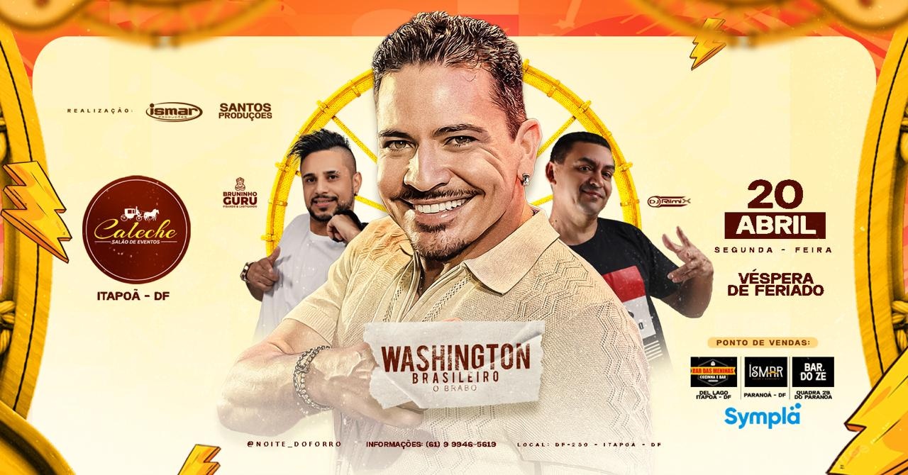 No dia 20 de abril, o Caleche – Itapoã DF recebe Washington Brasileiro para um show que promete muita energia, dança e uma conexão única com o público.