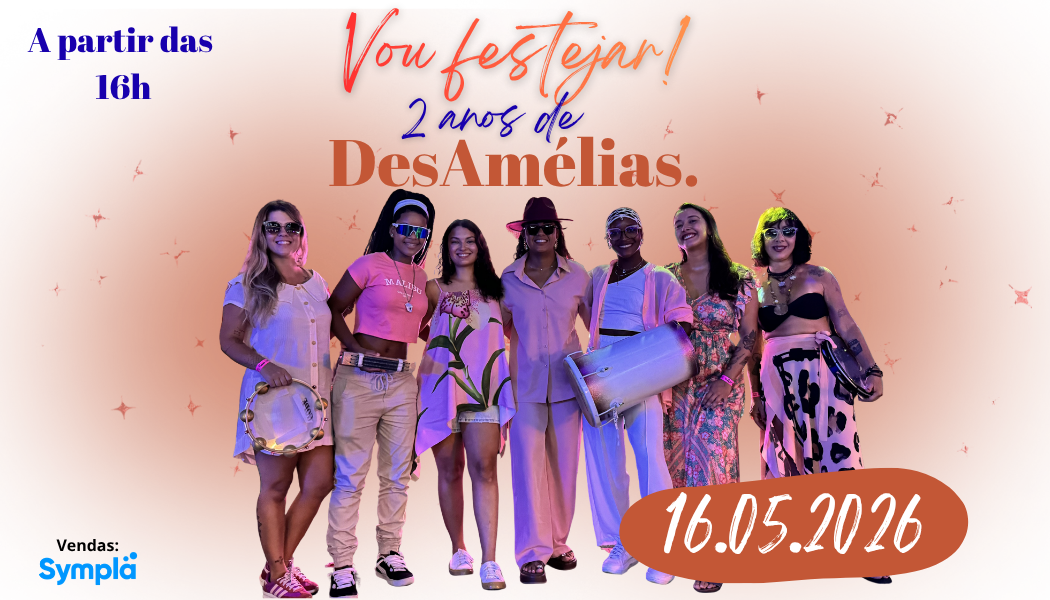 Um grupo feminino independente que nasceu para mostrar que o samba também é plural, potente e feminino, que a batida não tem gênero e que a nossa história é feita de muitas vozes. E é com muita alegria que convidamos a família, os amigos, os fãs e todos que nos apoiam nessa jornada desdo começo para celebrar com a gente esses 2 anos de DesAmélias!