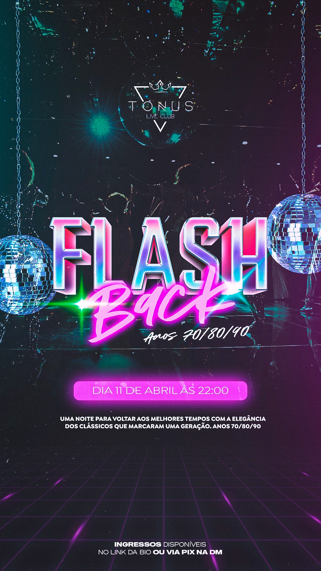 O Flash Back chega com uma proposta única: reviver a energia das pistas dos anos 70, 80, 90 reunindo os hits que fizeram história e continuam fazendo todo mundo dançar.