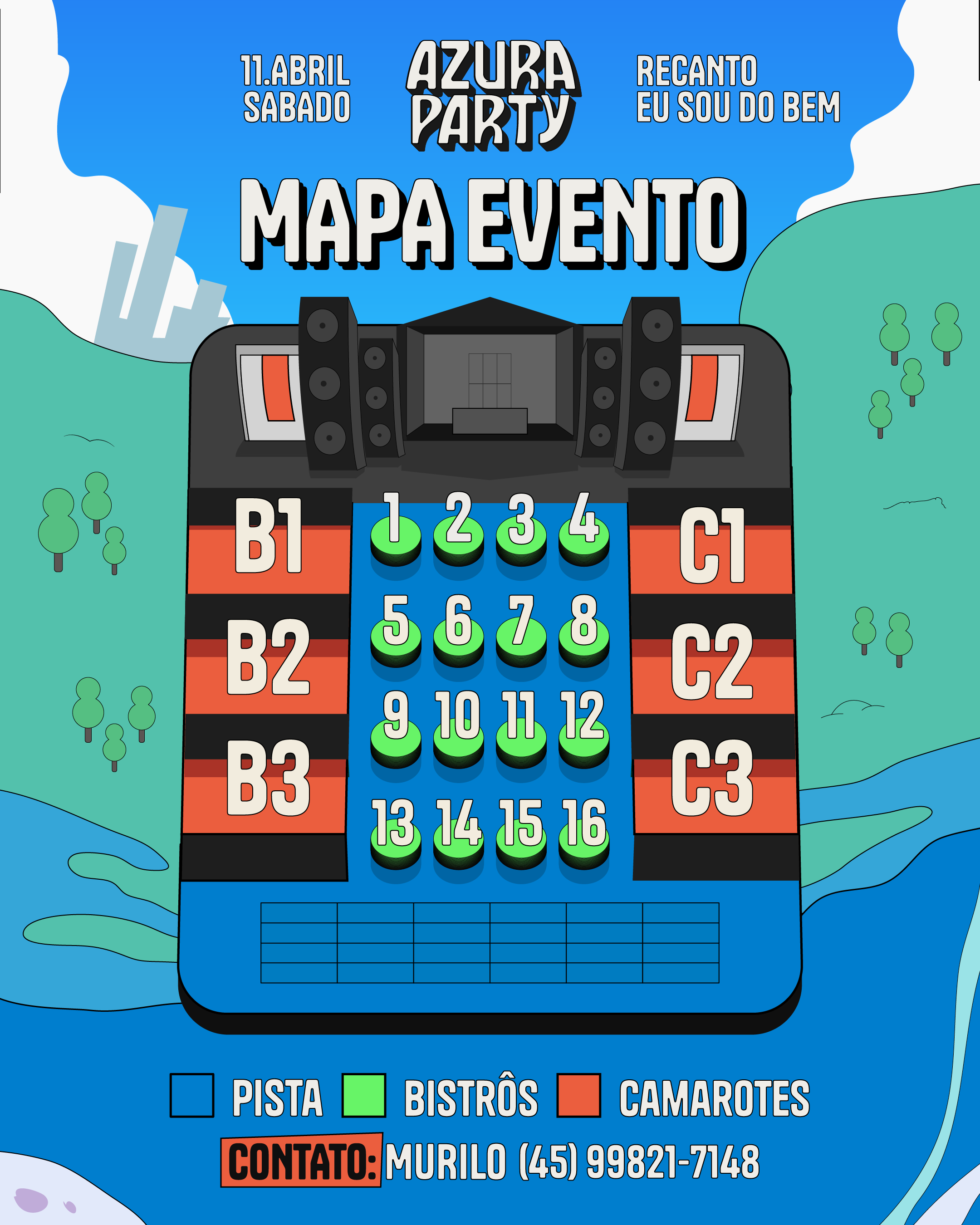 AZURA PARTY// DATA: 11 de Abril , 2026// LOCAL: Recanto Eu Sou Do Bem - Cafelândia PR// HORÁRIO DE ABERTURA: 22 horas// RESERVA CAMAROTES E MESAS: +[55 45 998217148](tel:55 45 998217148) ( Murilo Klein )// CLASSIFICAÇÃO +18 ANOS