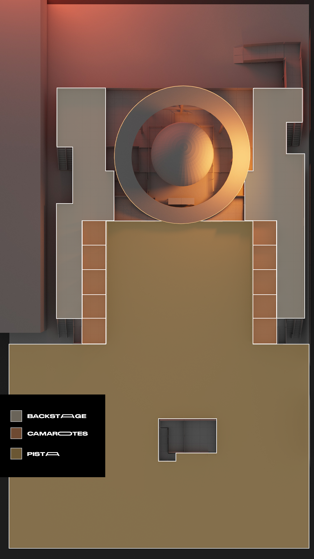 Acesso a área exclusiva com vista privilegiada e elevada nas laterais da pista.
