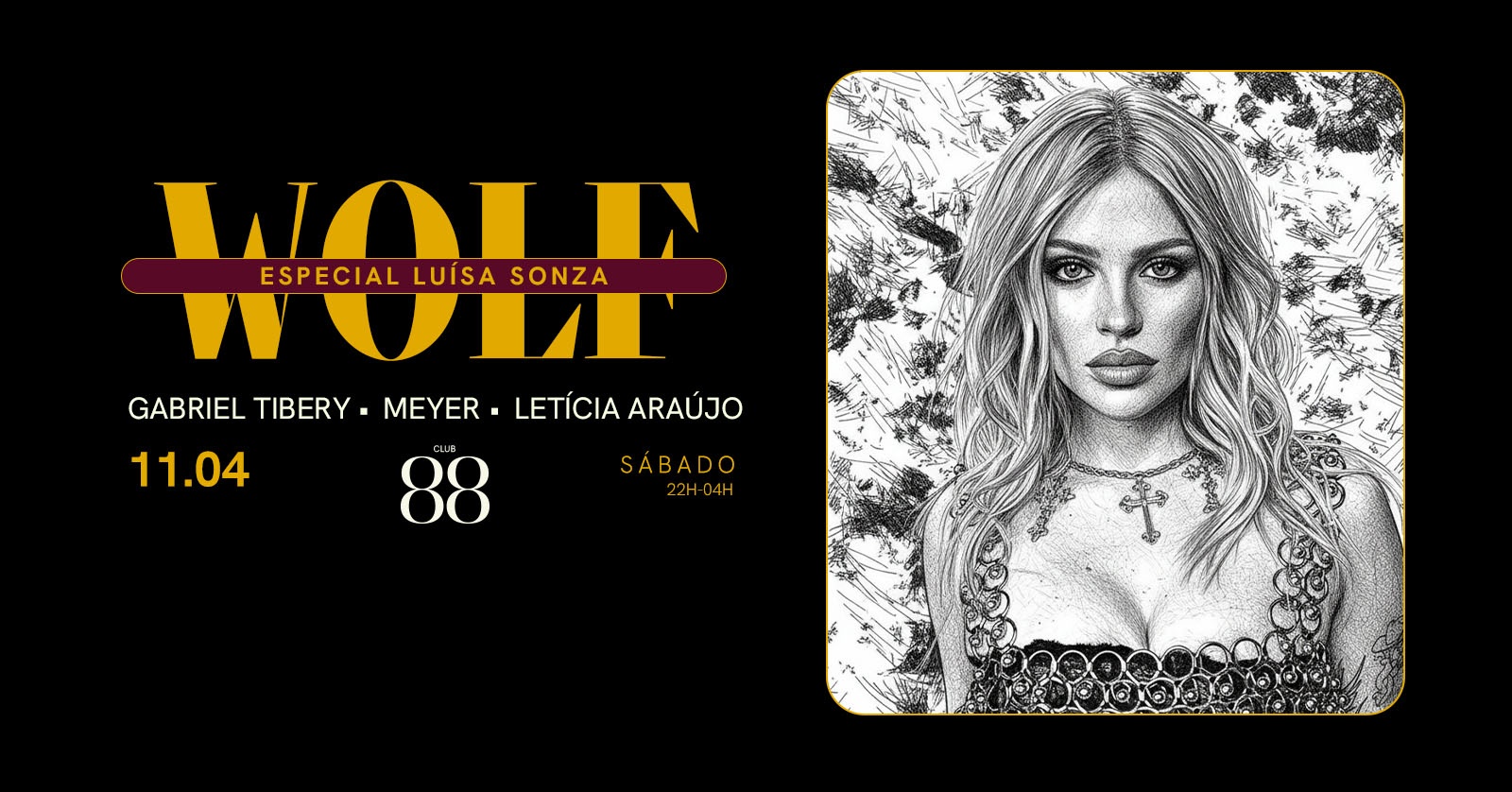 Dos hits que dominam as pistas aos momentos mais icônicos da sua carreira, Luísa Sonza será a trilha sonora de uma experiência imersiva, com muita energia e aquela vibe que só a Wolf sabe entregar. De “Modo Turbo” a “Penhasco”, passando por eras mais ousadas e sensíveis, essa é a noite pra cantar, dançar e sentir tudo; sem limites.