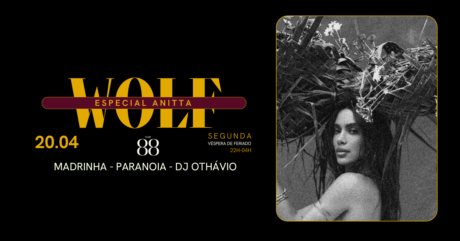 Choka Choka! A Wolf Especial Anitta chega pra transformar a pista num verdadeiro baile sem limites, numa noite dedicada à maior hitmaker do Brasil!