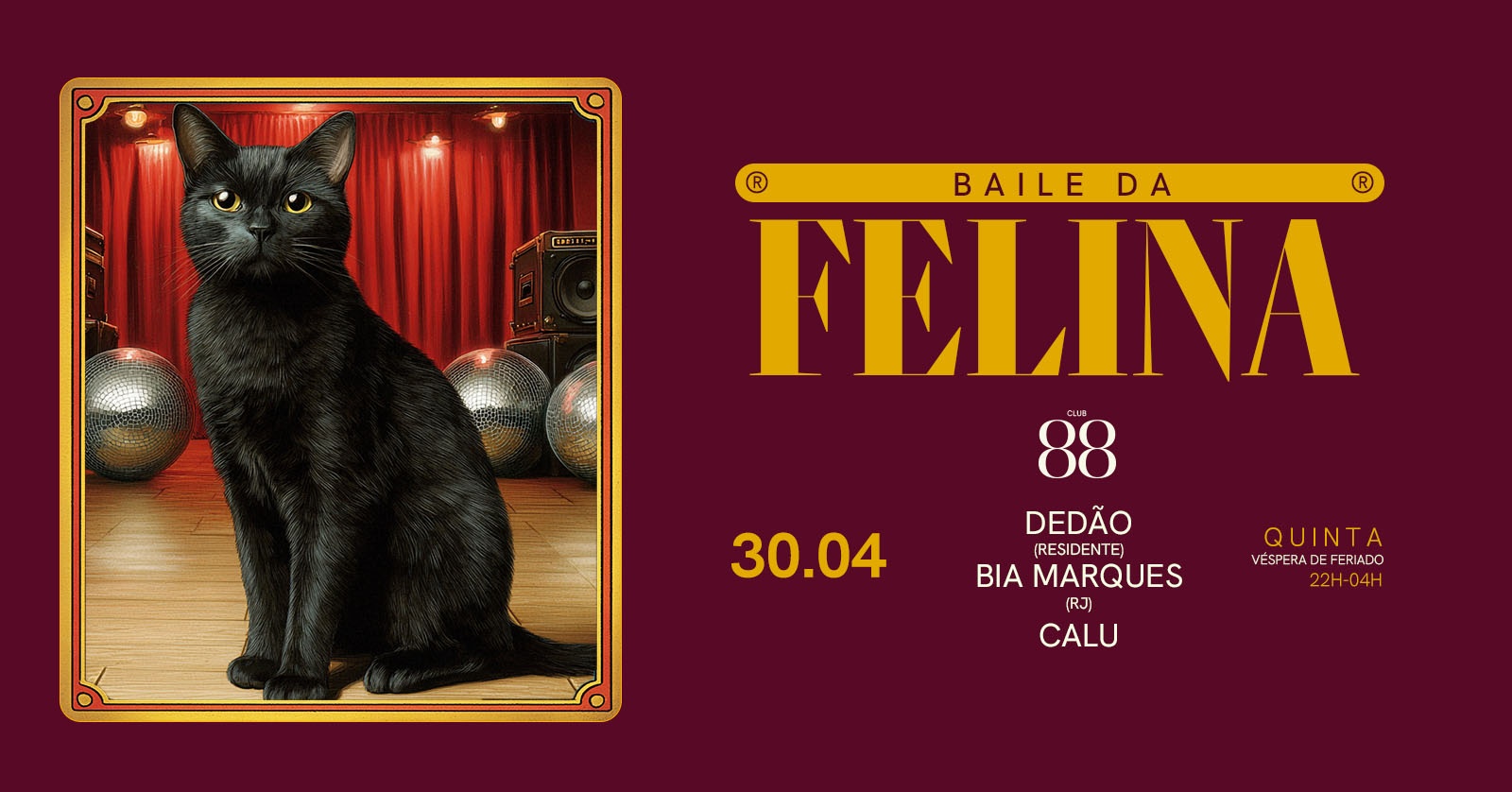 Se a pista da Felina já é conhecida por ser quente, imagina quando o funk assume o comando de ponta a ponta? No dia 30 de abril, sua véspera de feriado ganha uma edição especial feita para quem vive e respira a cultura do funk, do RJ a SP. Bora?