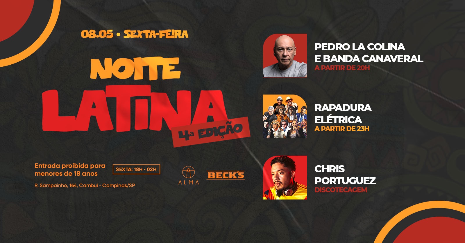 A Noite Latina tá de volta pra sua quarta edição no dia 8 de maio, sexta-feira! E vem ainda mais quente, vibrante e cheia de energia pra celebrar a cultura latina.