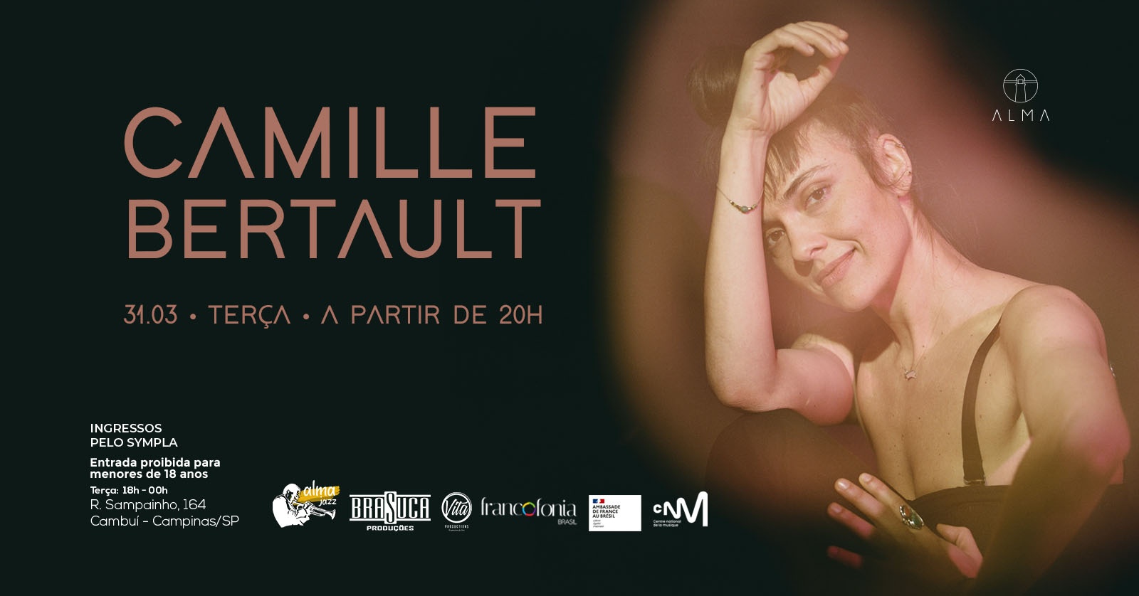 O palco do Alma recebe a cantora francesa Camille Bertault (@camillebertault) no dia 31 de março, terça-feira, em mais uma noite de Alma Jazz.