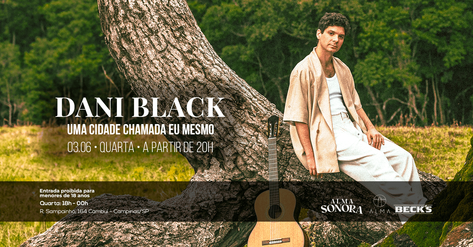 No dia 3 de junho, quarta-feira, o Alma Campinas recebe Dani Black que está lançando o seu novo projeto, “Uma Cidade Chamada Eu Mesmo”.
