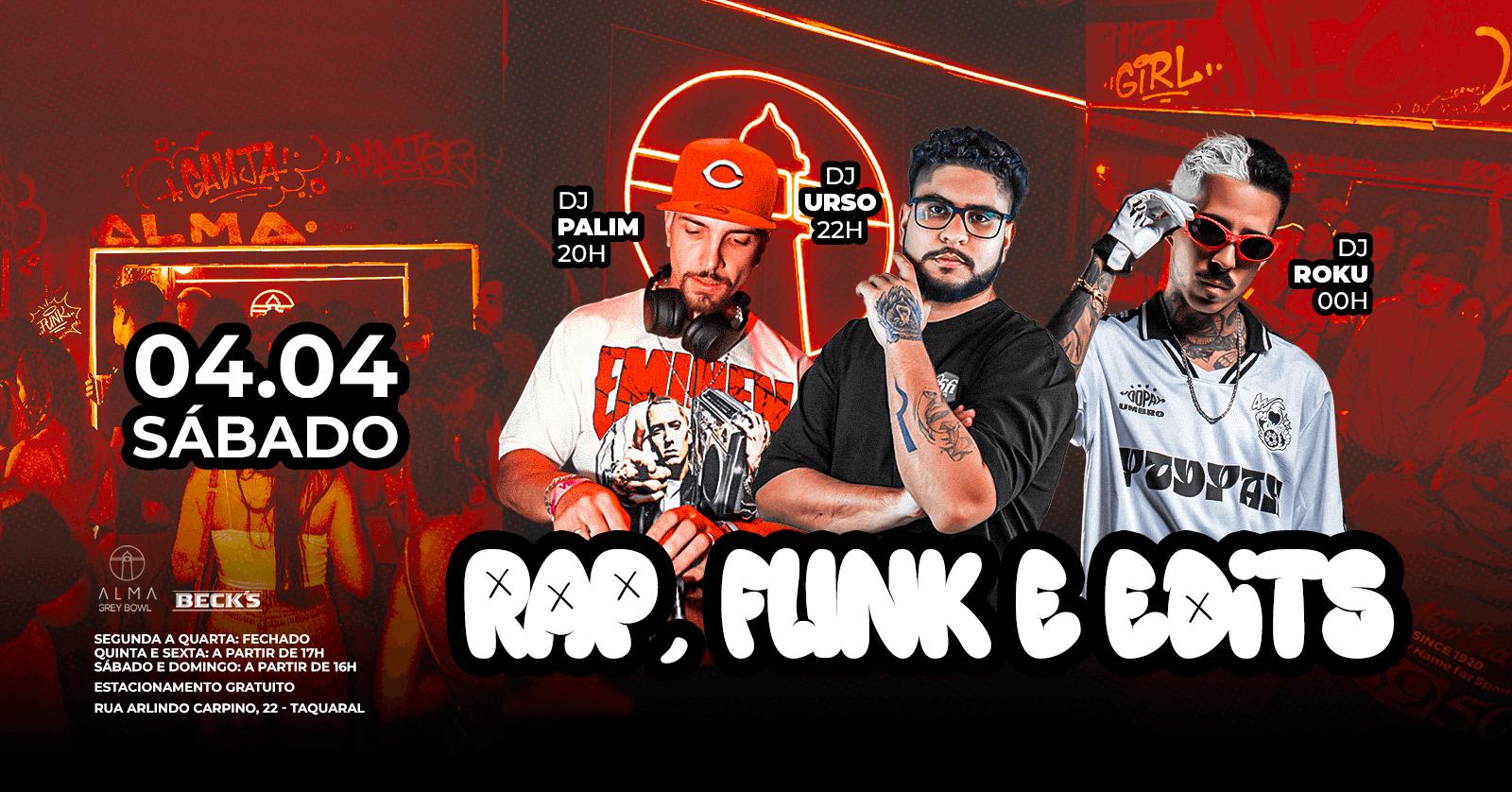 Dando continuidade no feriado, o sábado, 4 de abril, vem quente com uma seleção de rap, funk e edits no Bowl.