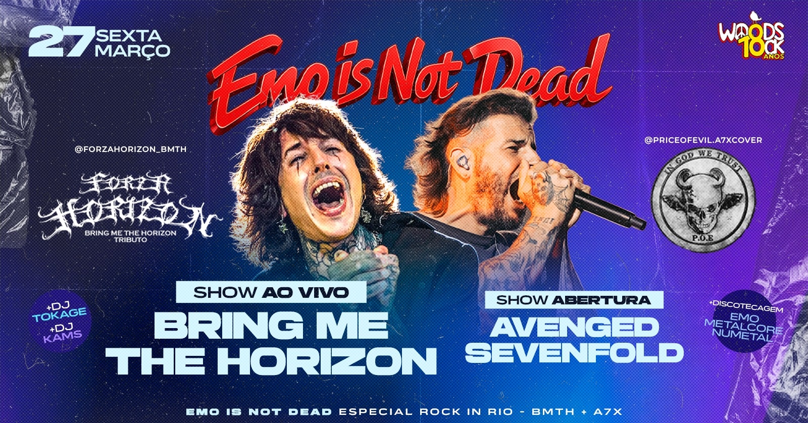 27 DE MARÇO, É DIA DE MUUUUIIIIITOOOO SHOW COVER AO VIVO DE BRING ME THE HORIZON + AVENGED SEVENFOLD NO EMO IS NOT DEAD