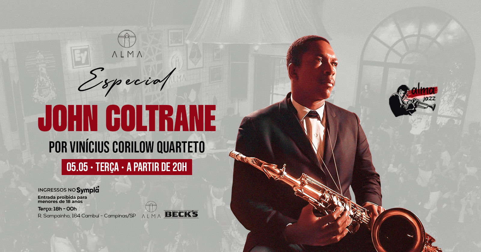 No dia 5 de maio, terça-feira, o Alma Jazz recebe uma noite especial dedicada a um dos nomes mais influentes do jazz, John Coltrane.