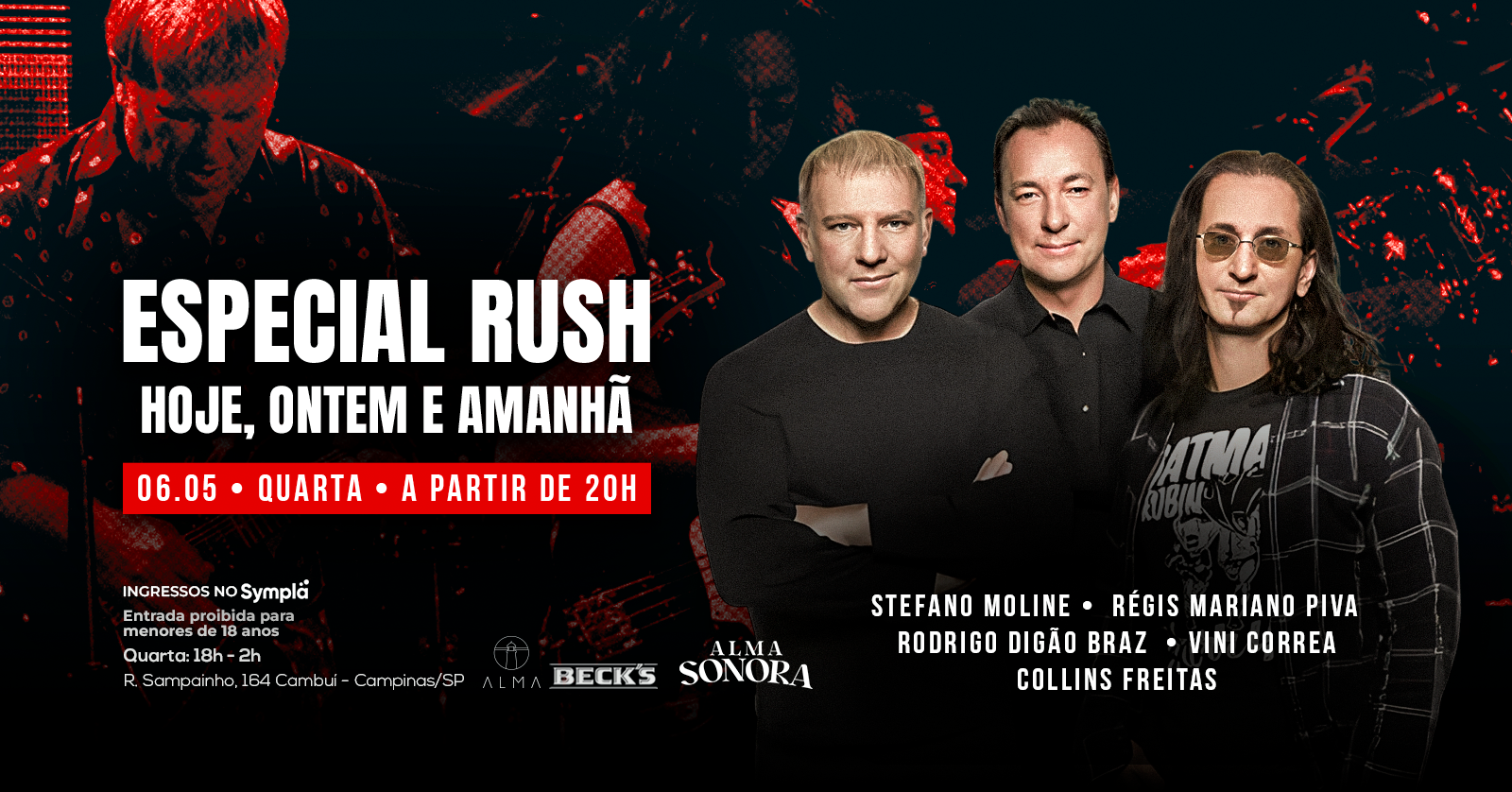 No Alma Campinas, teremos uma noite para uma apresentação dedicada a uma das maiores bandas da história do rock: o Rush.